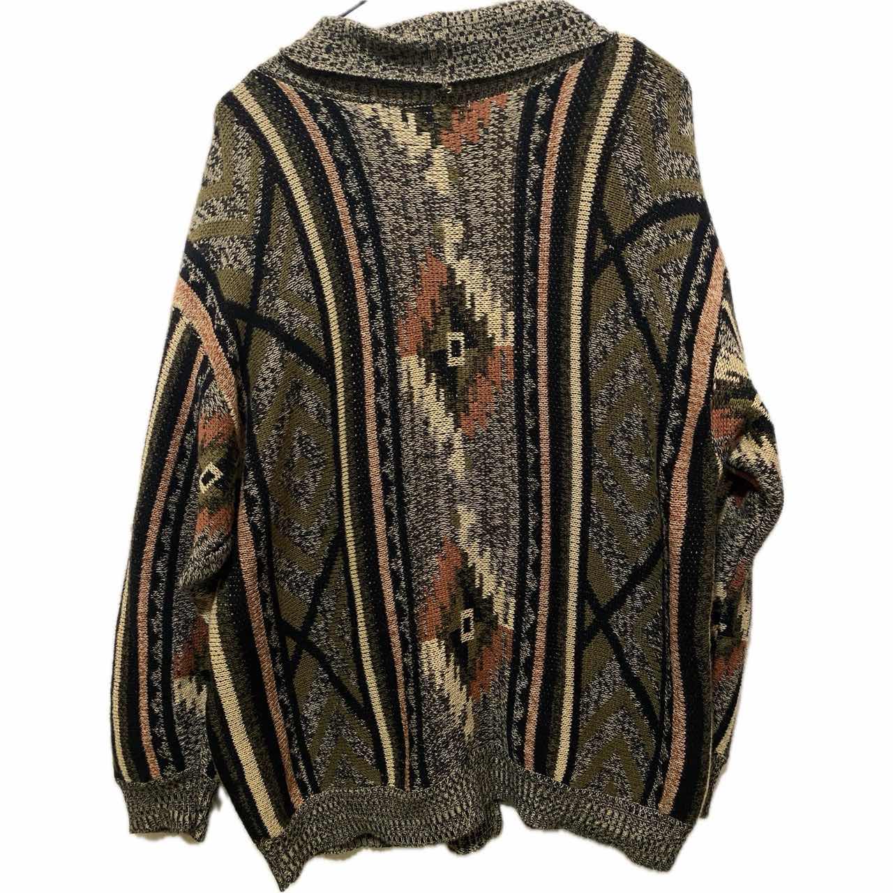 Japan Vintage 90s Jacquard Knit Sweater ジャガード デザインニット セーター XL 総柄 Vネック MERDOVER 90年代 日本製