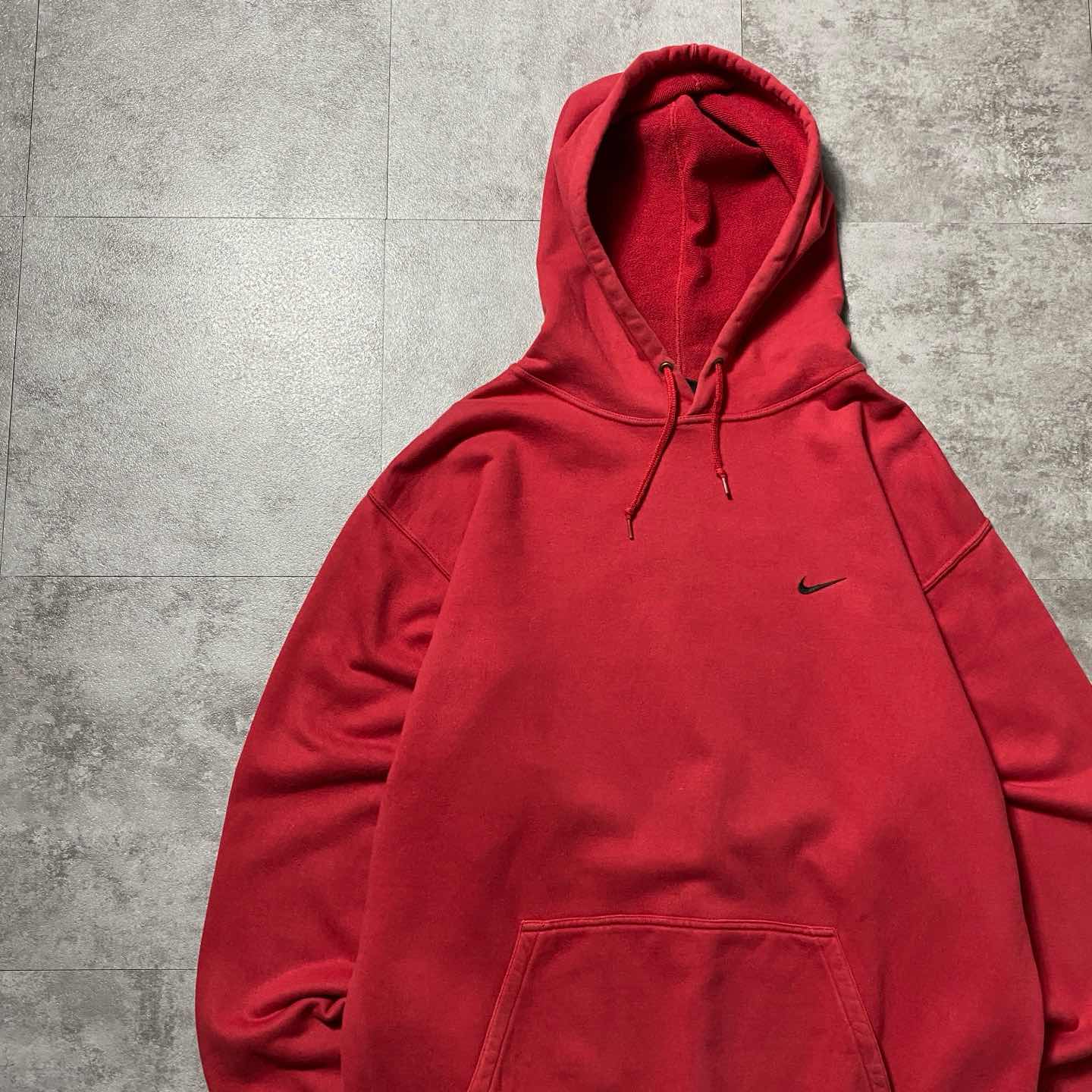 00s NIKE ナイキ スウォッシュ 刺繍ワンポイント レッド スウェット パーカー