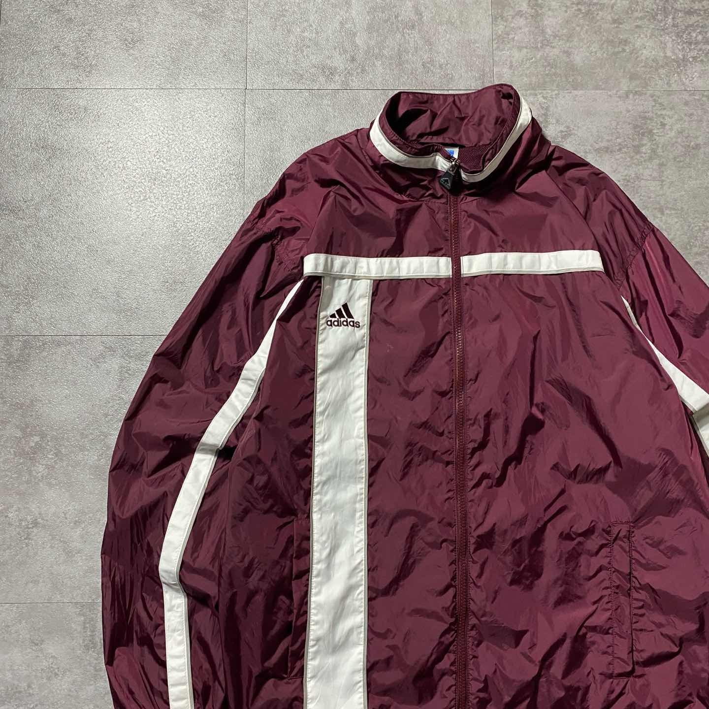 00s アディダス 刺繍パフォーマンスロゴ ワインレッド ナイロンジャケット