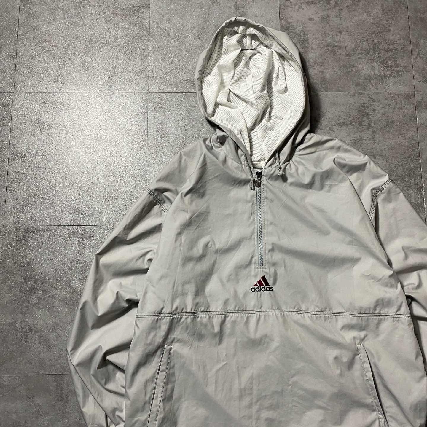 90s adidas デサント製アディダス センター刺繍 ハーフジップ ナイロン アノラック