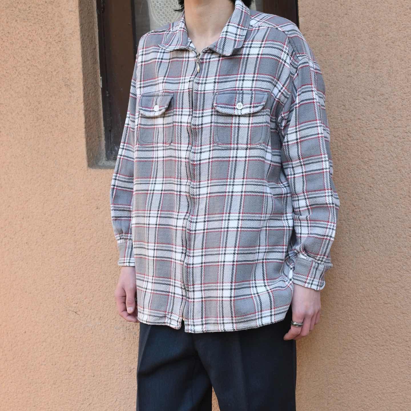 ラウンドリザード 好配色 オンブレ チェック 日本製 綿 長袖 シャツ ポケット