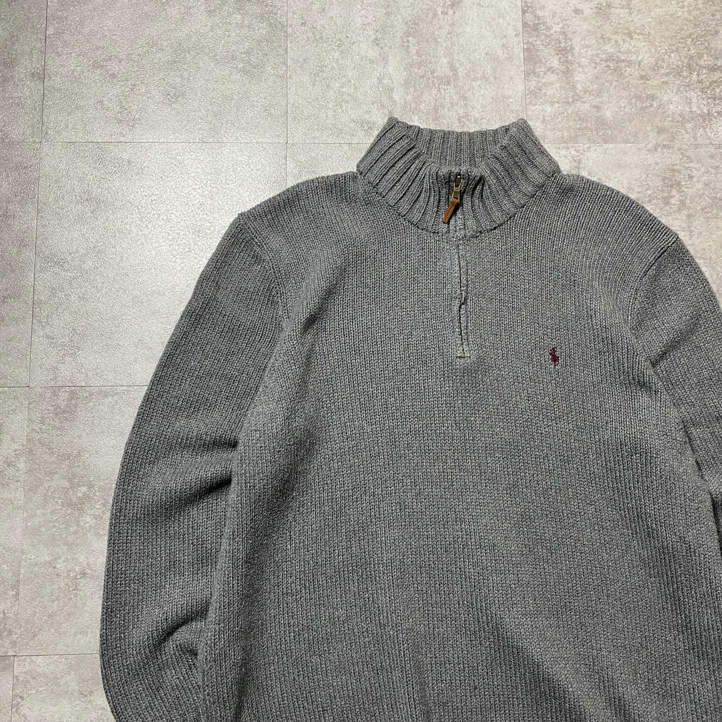 Ralph Laurenポロバイラルフローレン 刺繍ロゴ ハーフジップ ヘビーオンス コットンニット