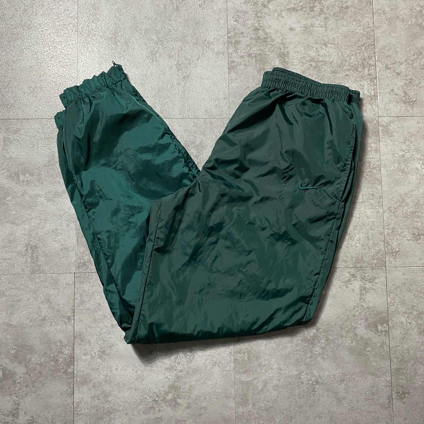 90s NIKE ナイキ スウォッシュ 刺繍ロゴ グリーン ナイロン トラックパンツ