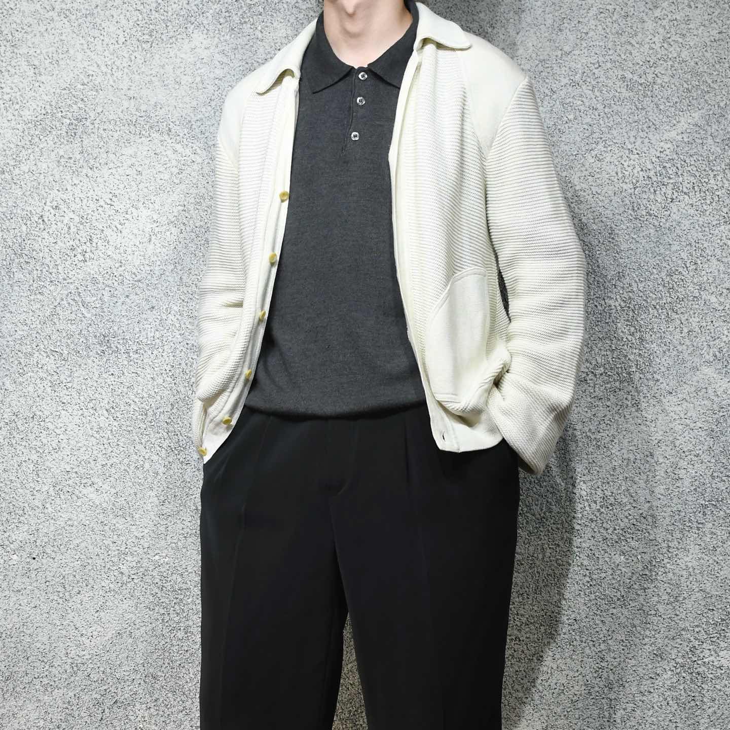 古着 デザイン カーディガン 羽織り ガウン パイルニット セーター グレー