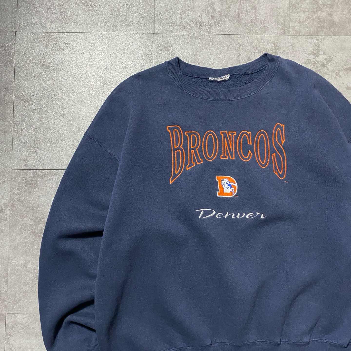 NFL BRONCOS ブロンコス 刺繍ロゴ ネイビー スウェット トレーナー