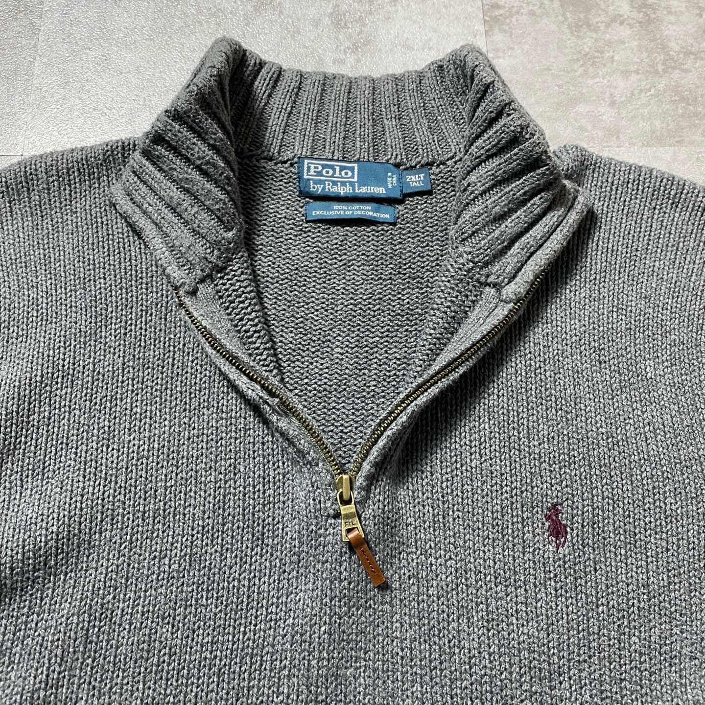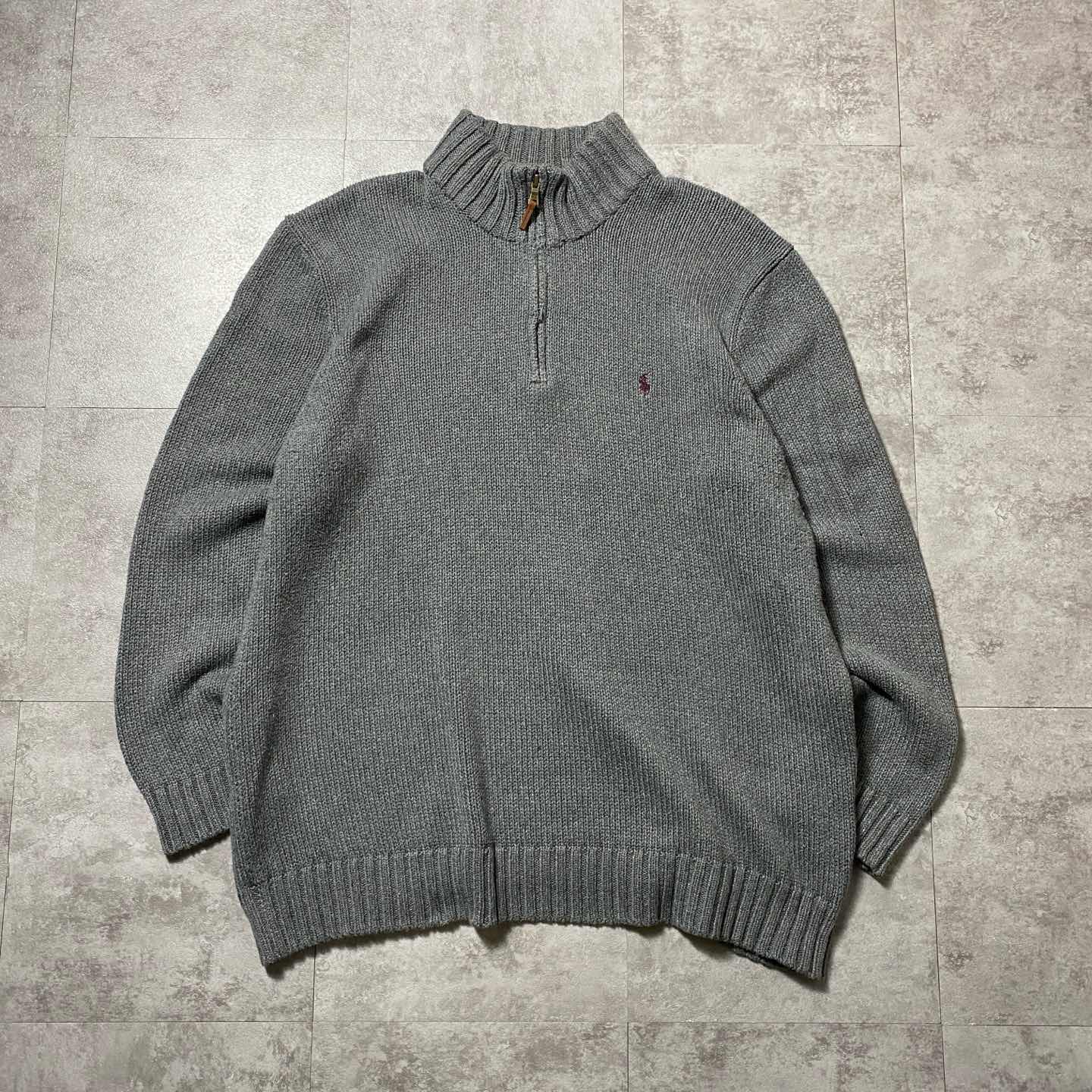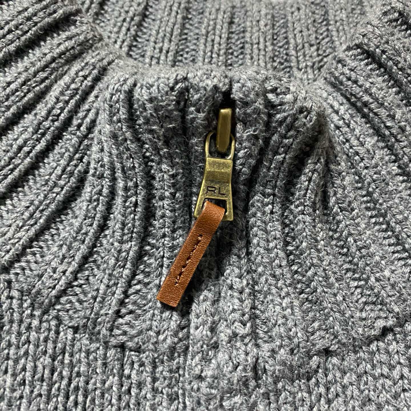 Ralph Laurenポロバイラルフローレン 刺繍ロゴ ハーフジップ ヘビーオンス コットンニット