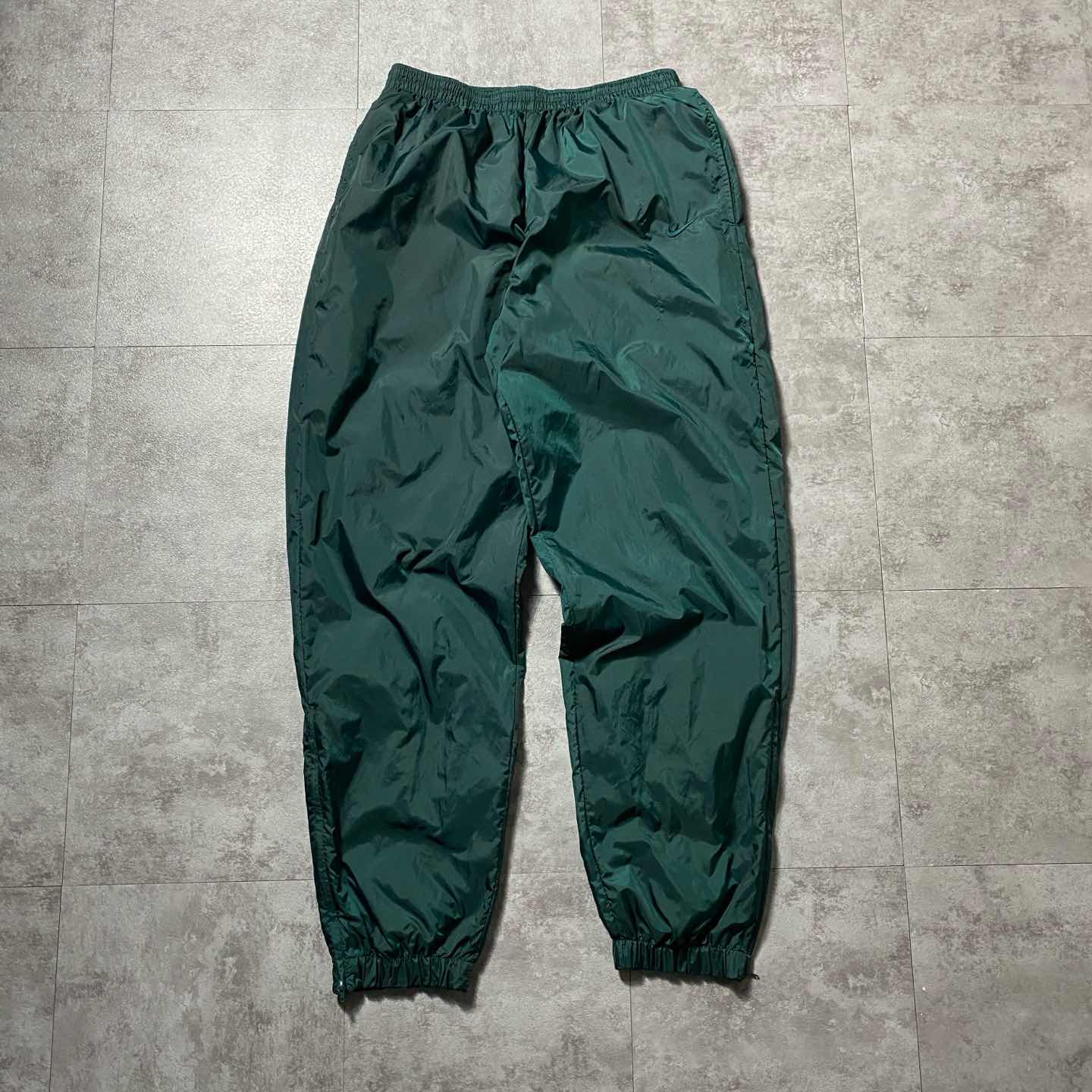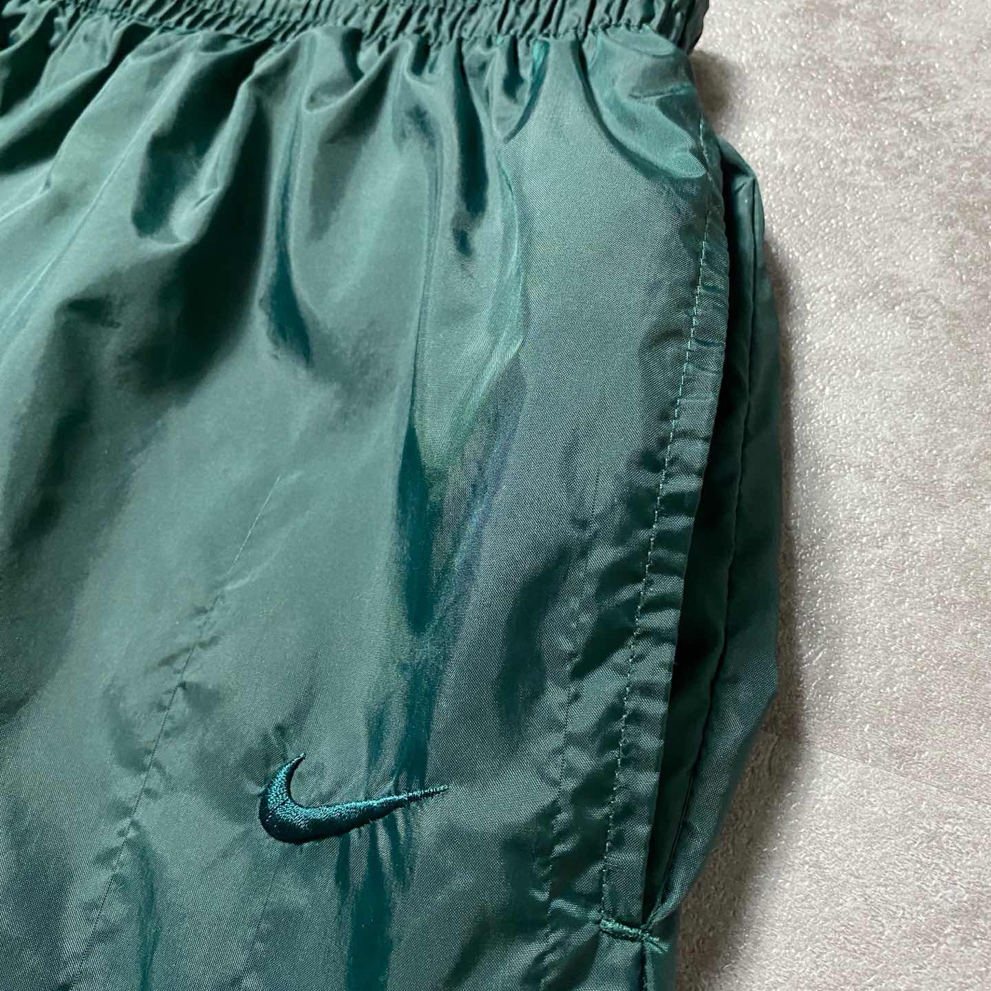 90s NIKE ナイキ スウォッシュ 刺繍ロゴ グリーン ナイロン トラックパンツ