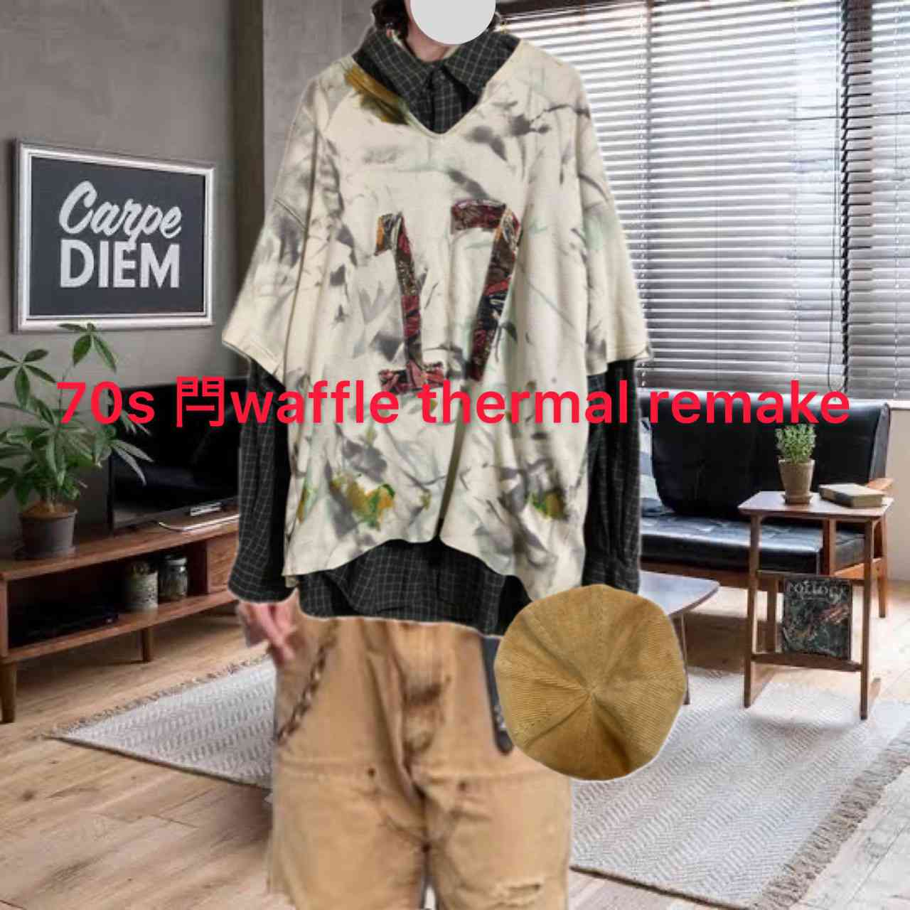 70s USA製 閂waffle thermal リメイク キーネックナンバリング F