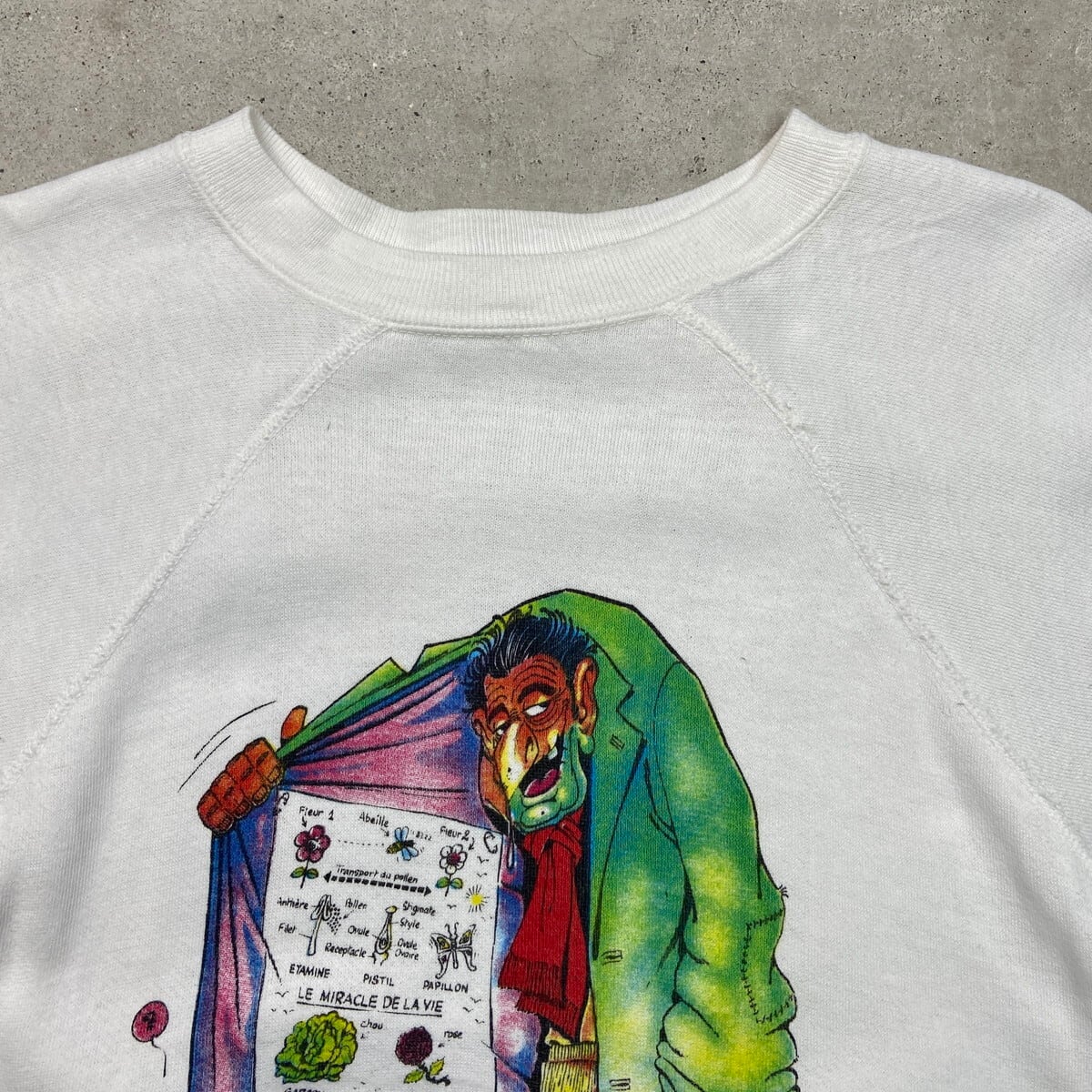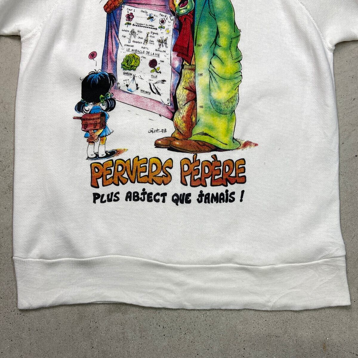 ■古着 ユーロ キャラクタープリント スウェットシャツ メンズXS レディースS相当 80s ヴィンテージ VINTAGE USA製 USED ジョーク ファニー フランス風刺漫画 フルイド・グラシアル ラグランスリーブ 白色【スウェット】/ホワイト 【サイズ】表記 M(実寸メンズXS相当) ※計測値をご確認ください。 着丈…58.5 身幅…47 肩幅…72 袖丈…52.5 【生産国】USA製 【素材】不明(おそらくコットンとアクリルの混紡かと思われます) 【状態】フロント左わき腹付近に一部ほつれ、袖口にシミ汚れがあります。 画像にてご確認ください。 【c251209109】 ※古着は洗濯、検品などのケアを行っております。(新品・デッドストックは洗濯していません。) ※モニターの発色により実物と異なる場合がございます。予めご了承ください。 ※ 海外直輸入USED品になります。