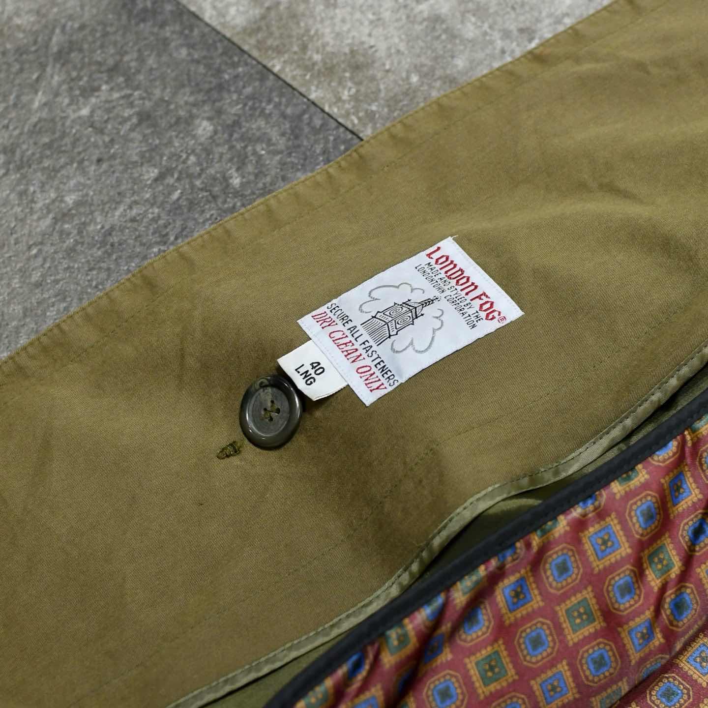 SIZE:40 LNG 着丈130cm 肩幅52cm 身幅66cm 袖丈64cm fabric/質感よりcotton 着用画像 173cm/56kg トレンチコートでフェード、なんだか その組み合わせが新鮮で、尚且つ抜群の雰囲気を 纏った逸品です。 単にキレイなコートとしてだけではなく、 フェードしているからこそ、ややカジュアルな スタイリングの上から雑に羽織るのも、 トレンチコートらしい合わせをしても 差別化出来るのが◎ ライナーが付くことで3シーズン着れる点や、 LONG表記だからこそ物足りなさを感じない ロング丈というのも推せるポイントです。 球数のあるカテゴリーだからこそ、 こんな個性のある個体を手元に置きたいなと。 ※日向と日陰両方で撮影しております。 色味に関しましては、物撮りを参考に お願いいたします。 ※撮影状況により、実物と多少色が異なる場合が ございます。 ※古着を取り扱っているため、気づかない汚れや ほつれ等がある場合がございます。 ※サイズは着用感で選んでおり、 表記サイズは説明欄の最初に記載しております。 古着 オーバーサイズ old vintage ヴィンテージ used 80's 90's アメリカ古着 ユーロ古着 POLO RALPH LAUREN Eddie Bauer OLD GAP LANDS' END ランズエンド LLBean エルエルビーン オールドギャップ エディーバウアー ラルフローレン ブルックスブラザーズ Brooks Brothers コート ロングコート ベージュ ロンドンフォグ などがお好きな方 #vintage #オーバーサイズ #old #used #90s #80s #古着 #ヴィンテージ #LANDSEND #ラルフローレン #POLORALPHLAUREN #ブルックスブラザーズ #BrooksBrothers #トレンチコート #LONDONFOG #ロングコート #コート