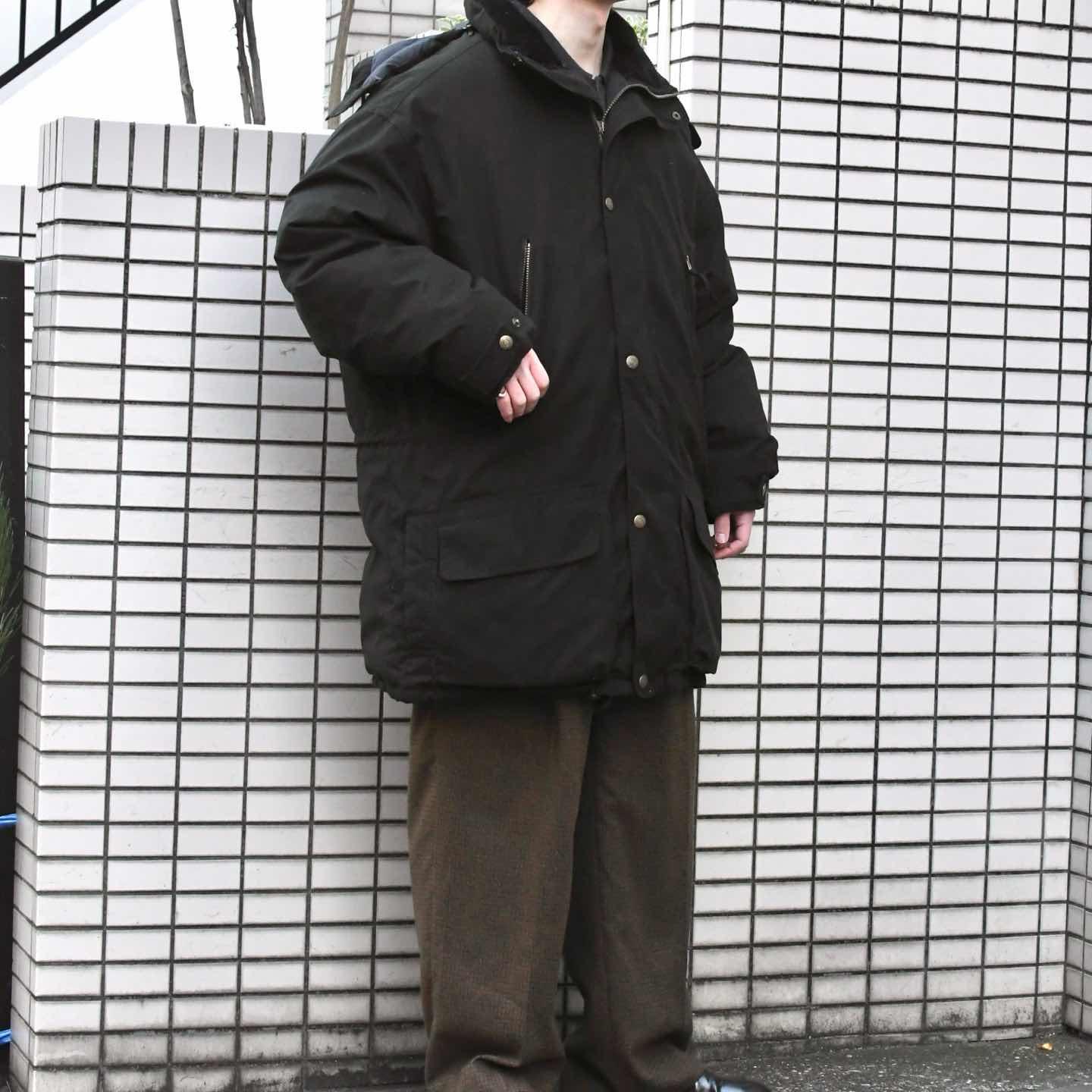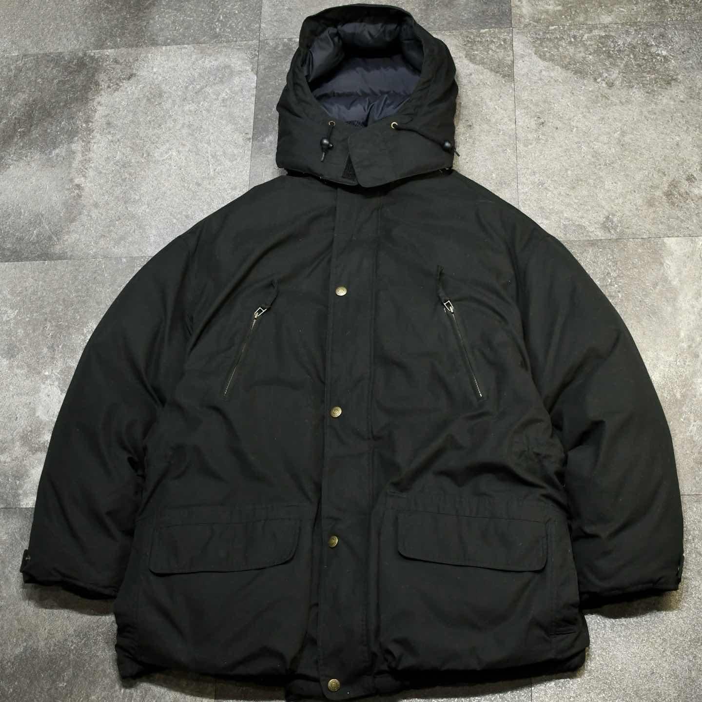 SIZE:XL 着丈95cm 肩幅68cm 身幅78cm 袖丈65cm fabric/poly・cotton 着用画像 177cm/64kg ダウンジャケットの生みの親、Eddie Bauerより。 当ブランドのダウンジャケットといえば、 オールパーパスやスカイライナーなど 名の知れた名品もあり、アメリカ軍の フライトジャケットにまで携わっていたりと、 歴史が深いからこそ信用出来るクオリティを 兼ね備えています。 そして年代は若いですが、こちらもその類。 通常のダックダウンやフェザーなどと比べ軽く、 それでいて暖かいグースダウンを使用し、 襟はコーデュロイ使用、ポケットの中まで暖かい 1着です。 また、ポケットの数やダブルジップ、ドローコード、 着脱できるフードなど機能性にも長けており、 好みに合わせてシルエットを変えることが 出来るのも◎ 暖かさ、機能性を求めるダウンであれば、 間違いない個体としておすすめです。 ※撮影状況により、実物と多少色が異なる場合が ございます。 ※古着を取り扱っているため、気づかない汚れや ほつれ等がある場合がございます。 ※サイズは着用感で選んでおり、 表記サイズは説明欄の最初に記載しております。 オーバーサイズ old vintage ヴィンテージ used 80's 90's POLO RALPH LAUREN OLD GAP LANDS' END ランズエンド LLBean エルエルビーン エディーバウアー ラルフローレン ブルックスブラザーズ Brooks Brothers 黒 ブラック ミドル丈 などがお好きな方 #vintage #オーバーサイズ #old #used #90s #80s #古着 #ヴィンテージ #LLBean #エルエルビーン #EddieBauer #エディーバウアー #NAUTICA #ノーティカ #POLORALPHLAUREN #ダウンジャケット #ダウン #グースダウン