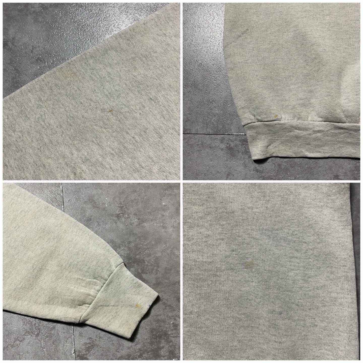 ○Size○ 表記→XL(着用感Mサイズ相当) ・着丈59 ・身幅60 ・袖丈72 (cm) ○Color○ ・グレー ○Material○ ・50%コットン 50%ポリエステル ○Condition○ ・フロント左脇腹付近 ・フロント右脇腹裾先付近 ・両袖先リブ ・左袖両面 ・右袖裏面に一部 それぞれ汚れ箇所あり ○Caution○ 当店で取り扱っている商材は全て『古着』となっております。 そのため、多少の状態難(ほつれ、傷、汚れ、リブの伸び、使用感、擦れ、色あせ、etc)がある場合がございます。 新品同様の完璧なお品物をお求めの方は当店でのお買い物を控えて頂きますよう宜しくお願いします。 また、購入された商品に関しましては、購入日時から起算して『72時間以内に』発送手続きの方を取らせて頂きます。 お急ぎの場合は購入前に当店オンラインストアの方にお問い合わせ頂きますよう宜しくお願いします。 26/102