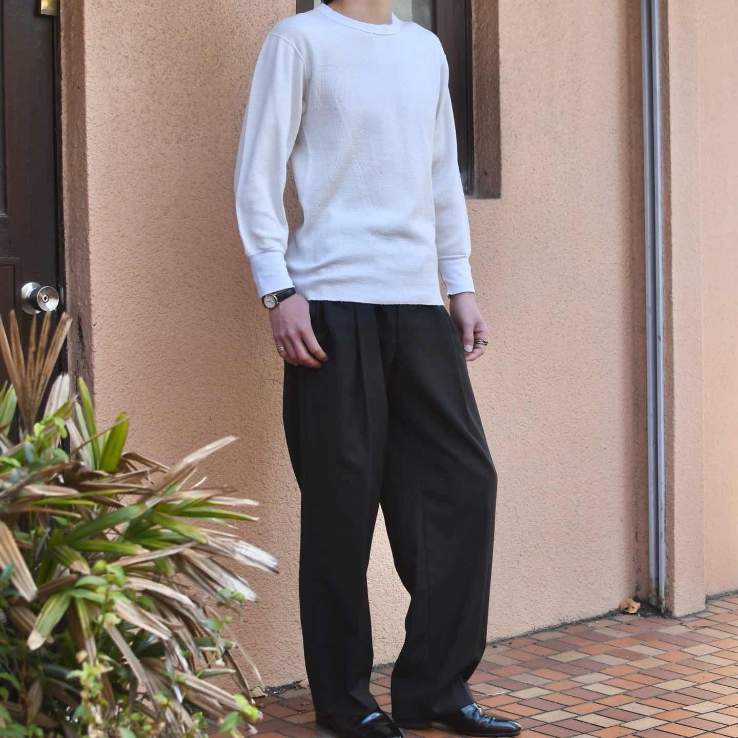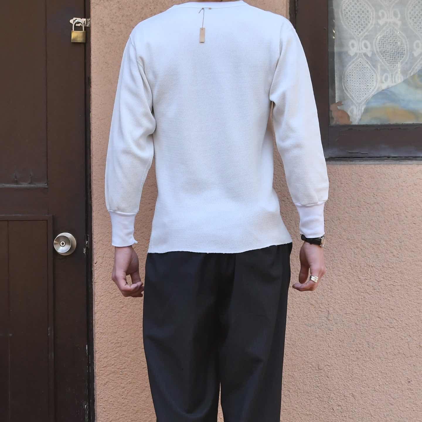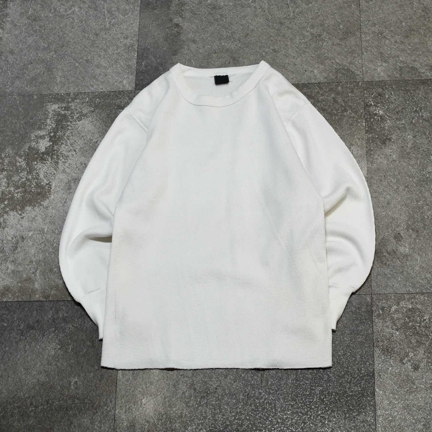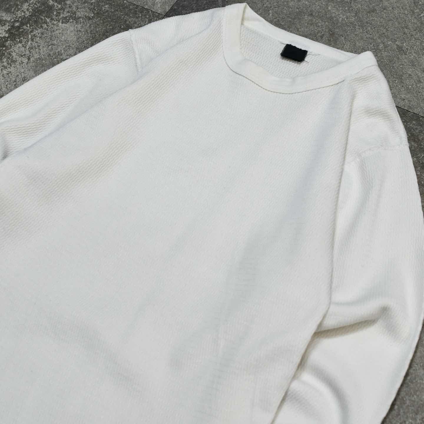 SIZE:- 着丈62cm 肩幅46cm 身幅48cm 袖丈54cm fabric/質感よりcotton・poly 着用画像 173cm/56kg 機会があるごとに綴っている、古着のジャケットと 新品のインナーを合わせた時に起こる、妙な"違和感" その”違和感”を解消してくれる古着のインナー、 サーマル。 そして古着で見掛けるそのサーマルの殆どが 身幅の狭い個体ですが、こちらはある程度 ゆとりのある個体で、一枚で着てもインナー感を 感じさせない個体です。 だからこそ見せないインナーとしてはもちろん、 見せるインナーとしても通年活躍し、 いつものスタイリングに、より纏まりを 与えてくれるのではないでしょうか。 ※撮影状況により、実物と多少色が異なる場合が ございます。 ※古着を取り扱っているため、気づかない汚れや ほつれ等がある場合がございます。 ※サイズは着用感で選んでおり、 表記サイズは説明欄の最初に記載しております。 古着 オーバーサイズ old vintage ヴィンテージ used 80's 90's アメリカ古着 ユーロ古着 POLO RALPH LAUREN Eddie Bauer OLD GAP LANDS' END ランズエンド LLBean エルエルビーン オールドギャップ エディーバウアー ラルフローレン ブルックスブラザーズ Brooks Brothers 長袖Tシャツ などがお好きな方 #vintage #オーバーサイズ #old #used #90s #80s #古着 #ヴィンテージ #LLBean #エルエルビーン #EddieBauer #エディーバウアー #oldgap #オールドギャップ #LANDSEND #ランズエンド #NAUTICA #ノーティカ #ラルフローレン #POLORALPHLAUREN #ブルックスブラザーズ #BrooksBrothers #サーマル #ロンT #カットソー #長袖Tシャツ