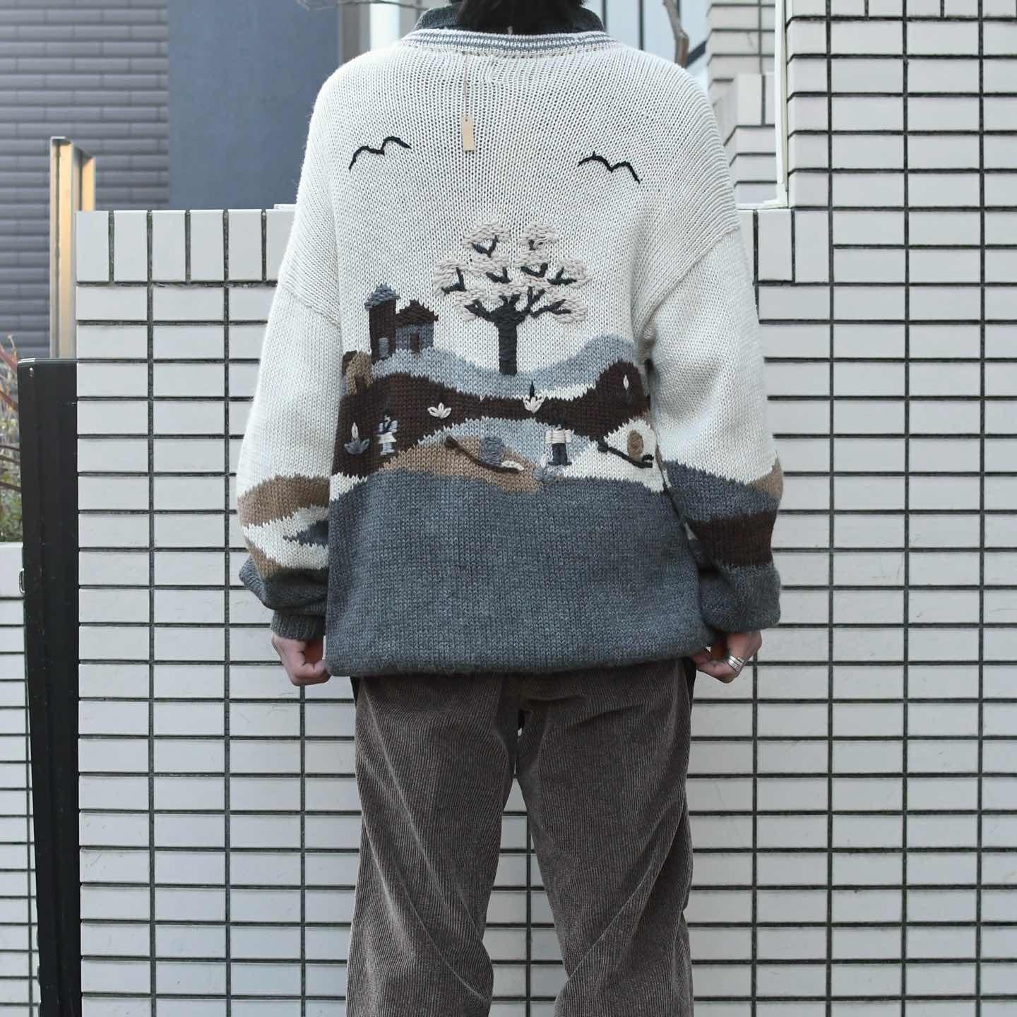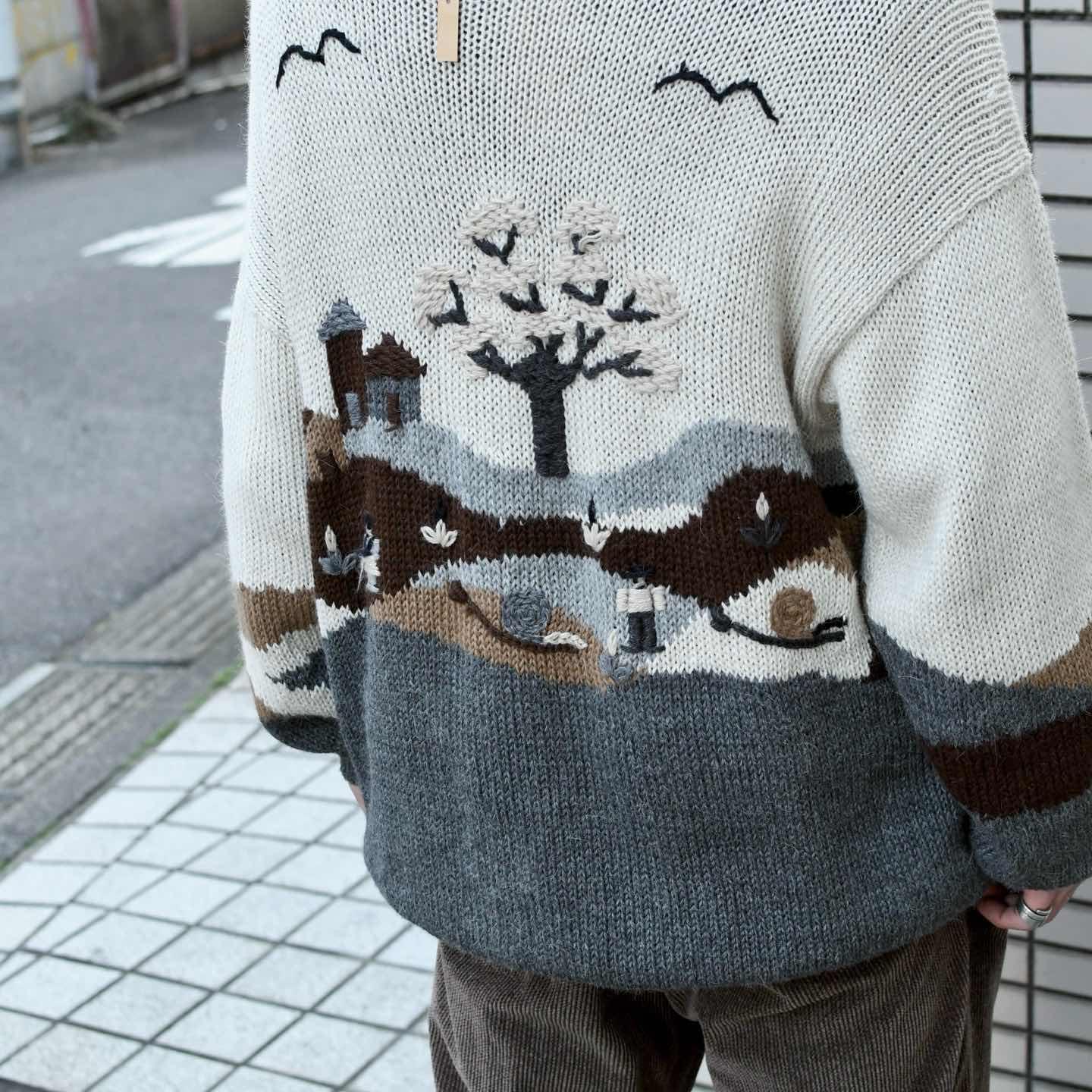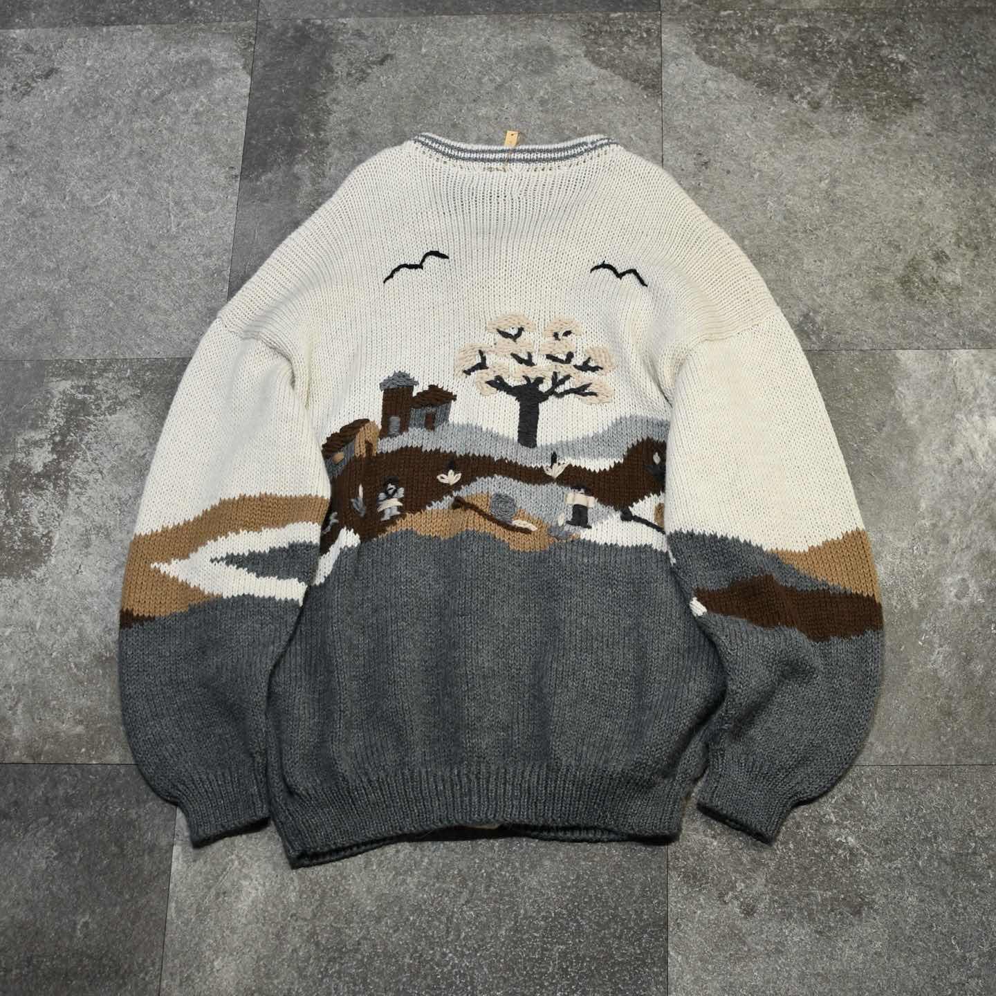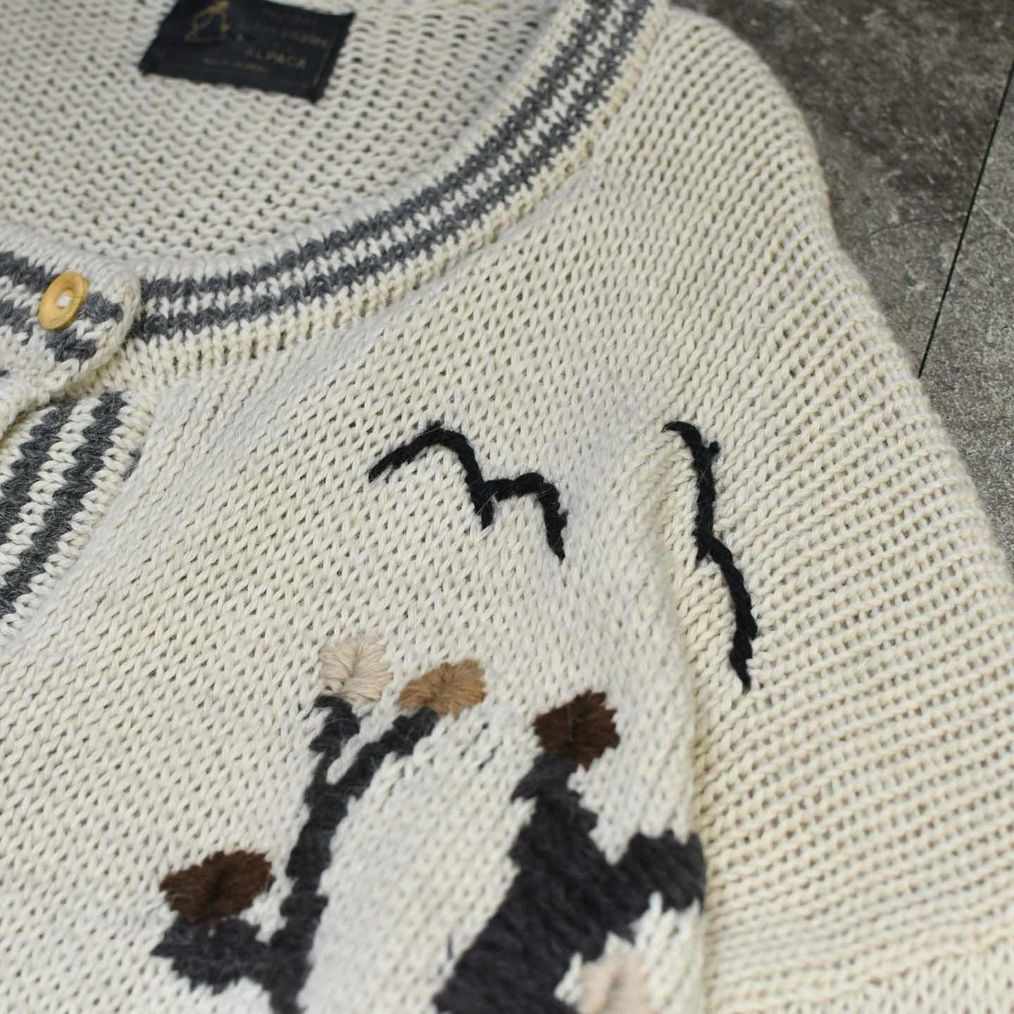 SIZE:- 着丈80cm 肩幅67cm 身幅62cm 袖丈62cm fabric/質感よりalpaca made in peru 着用画像 173cm/56kg この手の色んな意味で”温かみ”を感じるニットが 大好きです。 カラス?に太陽、そして老夫婦と巨大カタツムリ。 フルボタンだからこそニットとしてだけでなく、 カーディガンやブルゾン代わりとしても 活躍するアイテムです。 毛足の長いアルパカ素材で、ウールよりも 軽く暖かく、そして刺激が少ないのも◎ インナーにはシャツやニットポロを着て、 襟を出して、そんなスタイリングでどうぞ。 ※撮影状況により、実物と多少色が異なる場合が ございます。 ※古着を取り扱っているため、気づかない汚れや ほつれ等がある場合がございます。 ※サイズは着用感で選んでおり、 表記サイズは説明欄の最初に記載しております。 古着 オーバーサイズ old vintage ヴィンテージ used 80's 90's アメリカ古着 ユーロ古着 POLO RALPH LAUREN Eddie Bauer OLD GAP LANDS' END ランズエンド LLBean エルエルビーン オールドギャップ エディーバウアー ラルフローレン ブルックスブラザーズ Brooks Brothers アイボリー 生成り カーディガン ブルゾン などがお好きな方 #vintage #オーバーサイズ #old #used #90s #80s #古着 #ヴィンテージ #アメリカ古着 #ユーロ古着 #LLBean #エルエルビーン #EddieBauer #エディーバウアー #oldgap #オールドギャップ #LANDSEND #ランズエンド #NAUTICA #ノーティカ #ラルフローレン #POLORALPHLAUREN #アルパカニット #ニット #セーター #デザインニット #ニットブルゾン #ブルゾン #カーディガン