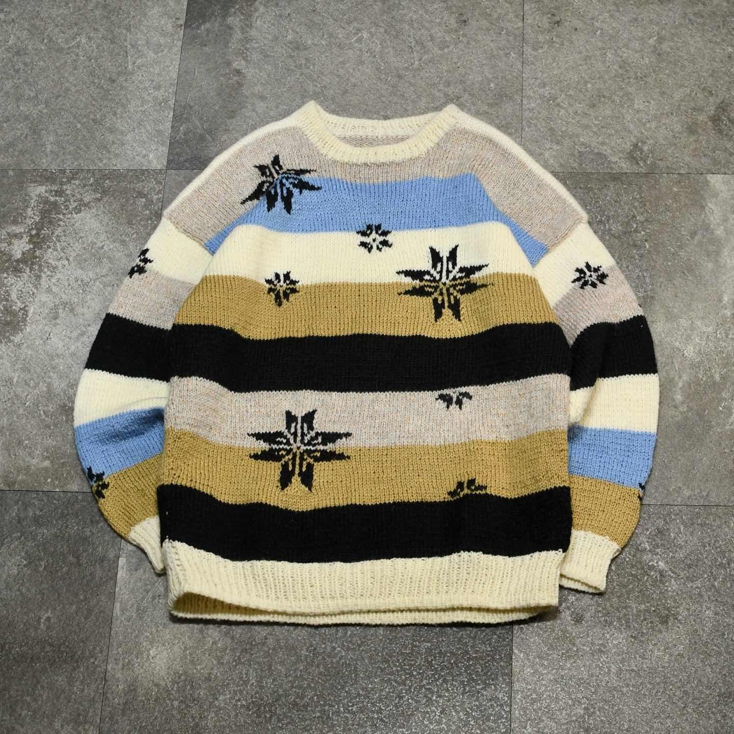 古着 ローゲージ デザインニット ニット セーター ウールニット ボーダー