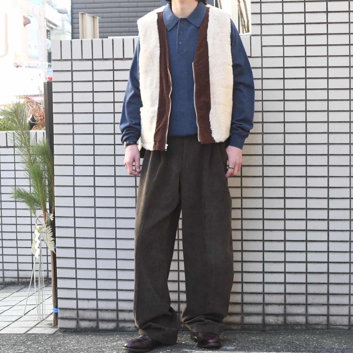 古着 フェイクファー コーデュロイベスト ベスト ワークベスト ブラウン 茶色