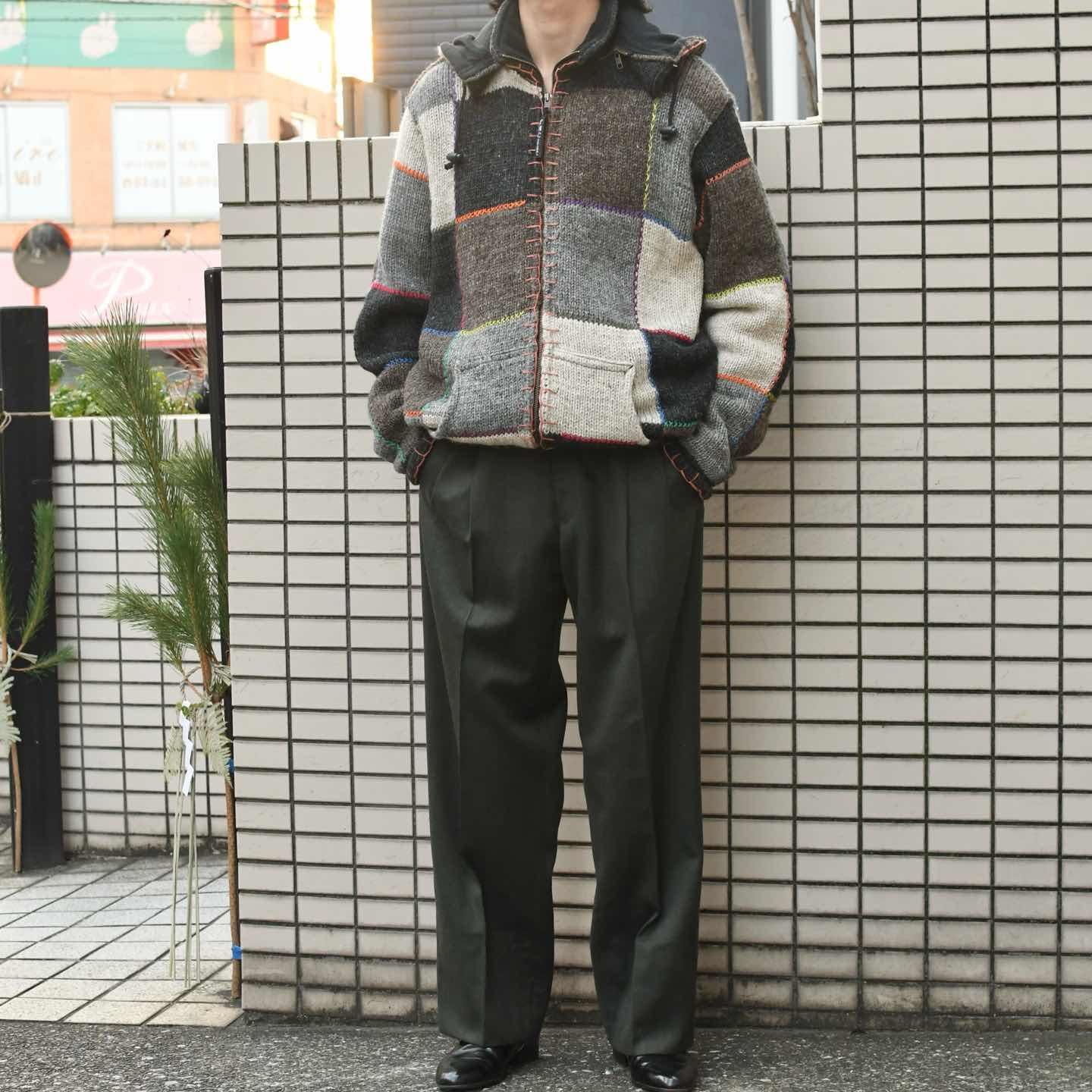 SIZE:L 着丈79cm 肩幅51cm 身幅63cm 袖丈67cm fabric/wool made in Nepal 着用画像 173cm/58kg この手のウール生地のアイテムは、 粗く着心地がチクチクとした印象ですが フリースの裏地が付くことでストレス無く、 尚且つ暖かく着れる個体。 ”アウター”として着るのはもちろんですが、 フリースの裏地で尚且つウールという点から ”トップス兼アウター”としても充分過ぎる 防寒性を兼ね備え、楽に様になるアイテムです。 裾につくドローコードを絞れば、収まりの良い 丸みがあるシルエットに◎ ※撮影状況により、実物と多少色が異なる場合が ございます。 ※古着を取り扱っているため、気づかない汚れや ほつれ等がある場合がございます。 ※サイズは着用感で選んでおり、 表記サイズは説明欄の最初に記載しております。 古着 オーバーサイズ old vintage ヴィンテージ used 80's 90's アメリカ古着 ユーロ古着 POLO RALPH LAUREN Eddie Bauer OLD GAP LANDS' END ランズエンド LLBean エルエルビーン オールドギャップ エディーバウアー ラルフローレン ブルックスブラザーズ Brooks Brothers ハンドメイド コート デザイン ノルディックニット エクアドルニット などがお好きな方 #vintage #オーバーサイズ #old #used #90s #80s #古着 #ヴィンテージ #LLBean #エルエルビーン #EddieBauer #エディーバウアー #oldgap #オールドギャップ #LANDSEND #NAUTICA #ラルフローレン #POLORALPHLAUREN #BrooksBrothers #ダッフルコート #ジャケット #ウールジャケット #ハンドメイド #ノルディックニット #エクアドルニット