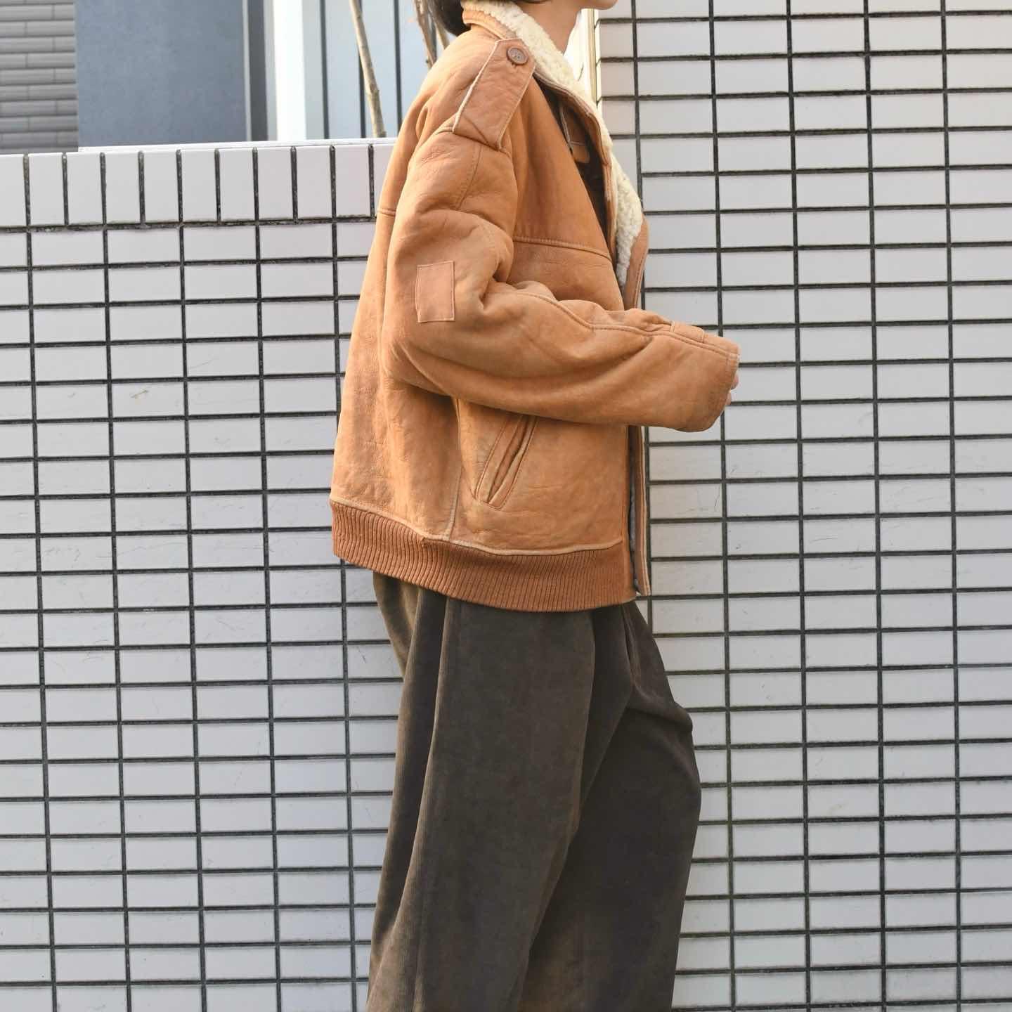 古着 ショート丈 ムートン レザージャケット ジャケット ムートンジャケット