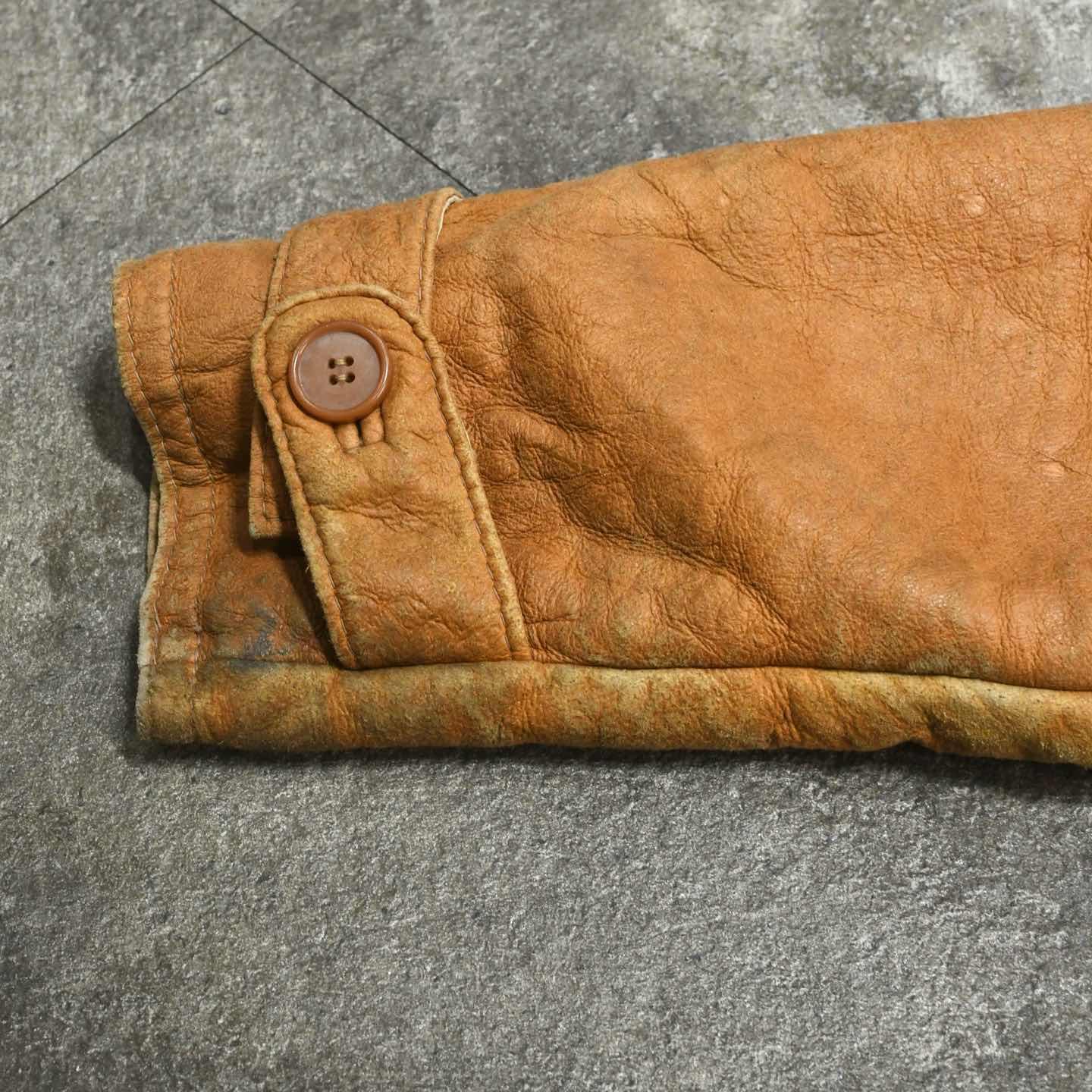 SIZE:54 着丈68cm 肩幅63cm 身幅69cm 袖丈62cm fabric/leather made in Uruguay 着用画像 173cm/58kg 暖かいが故、ボリュームが出てしまう ムートンジャケットですが、こちらは丈感が絶妙で、 上手くボリュームを活かしたシルエットの良さを 兼ね備えた逸品です。 さらに男臭くなりにくいカラーで、 大人びた雰囲気を纏い、落ち着きのある印象で コーデに落とし込めるのが推せるポイント。 襟を作ったり、チンストまで留めたり、 そして玄人はぜひ裏返して、なんておすすめです。 ※レザー特有のスレや汚れあり。 ※撮影状況により、実物と多少色が異なる場合が ございます。 ※古着を取り扱っているため、気づかない汚れや ほつれ等がある場合がございます。 ※サイズは着用感で選んでおり、 表記サイズは説明欄の最初に記載しております。 古着 オーバーサイズ old vintage ヴィンテージ used 80's 90's アメリカ古着 ユーロ古着 POLO RALPH LAUREN Eddie Bauer OLD GAP LANDS' END ランズエンド LLBean エルエルビーン オールドギャップ エディーバウアー ラルフローレン ブルックスブラザーズ Brooks Brothers ベージュ ブラウン 茶色 ボア 短丈 などがお好きな方 #vintage #オーバーサイズ #old #used #90s #80s #古着 #ヴィンテージ #LLBean #エルエルビーン #EddieBauer #エディーバウアー #oldgap #オールドギャップ #LANDSEND #ランズエンド #NAUTICA #ノーティカ #ラルフローレン #POLORALPHLAUREN #ブルックスブラザーズ #BrooksBrothers #レザージャケット #ムートンジャケット #ジャケット #ショート丈