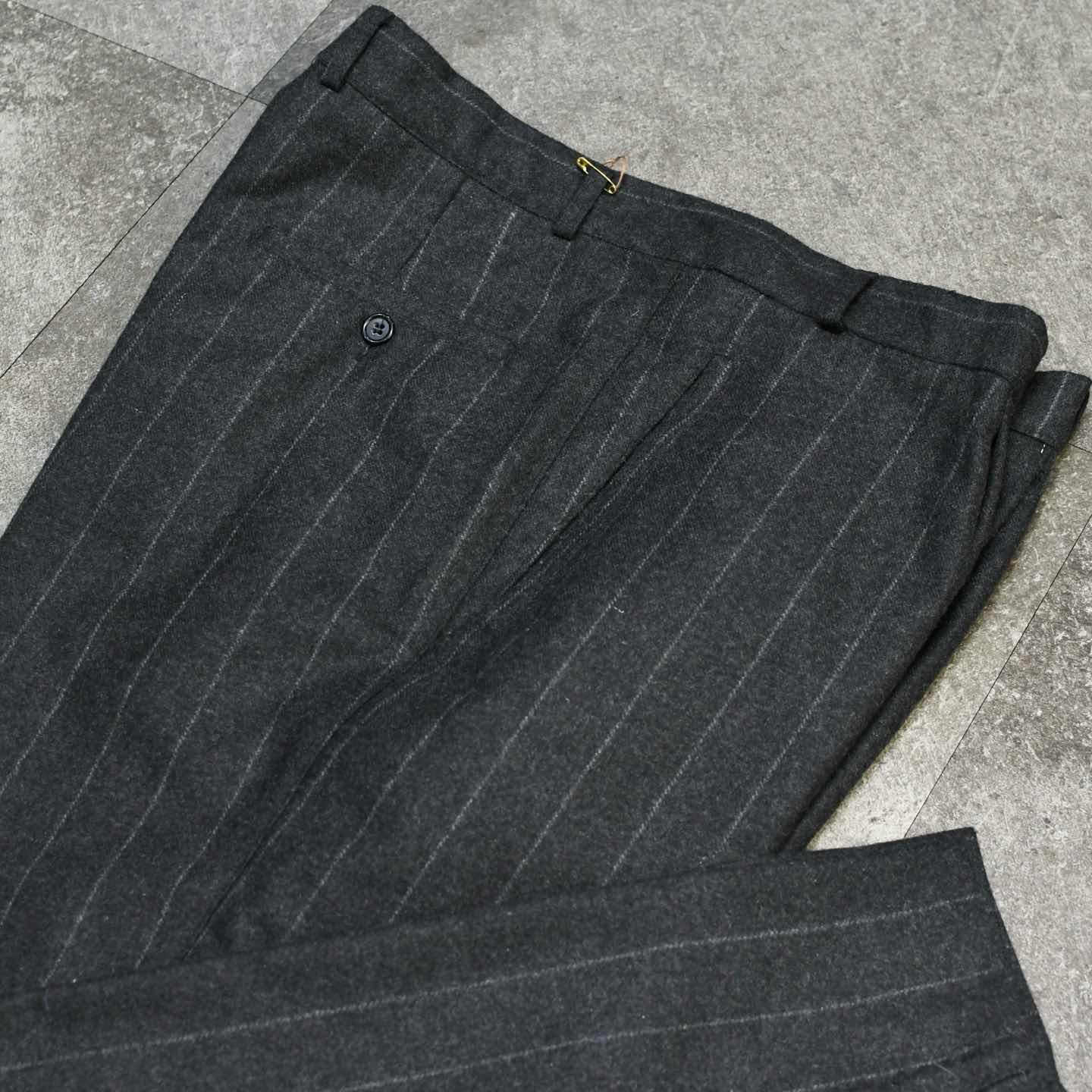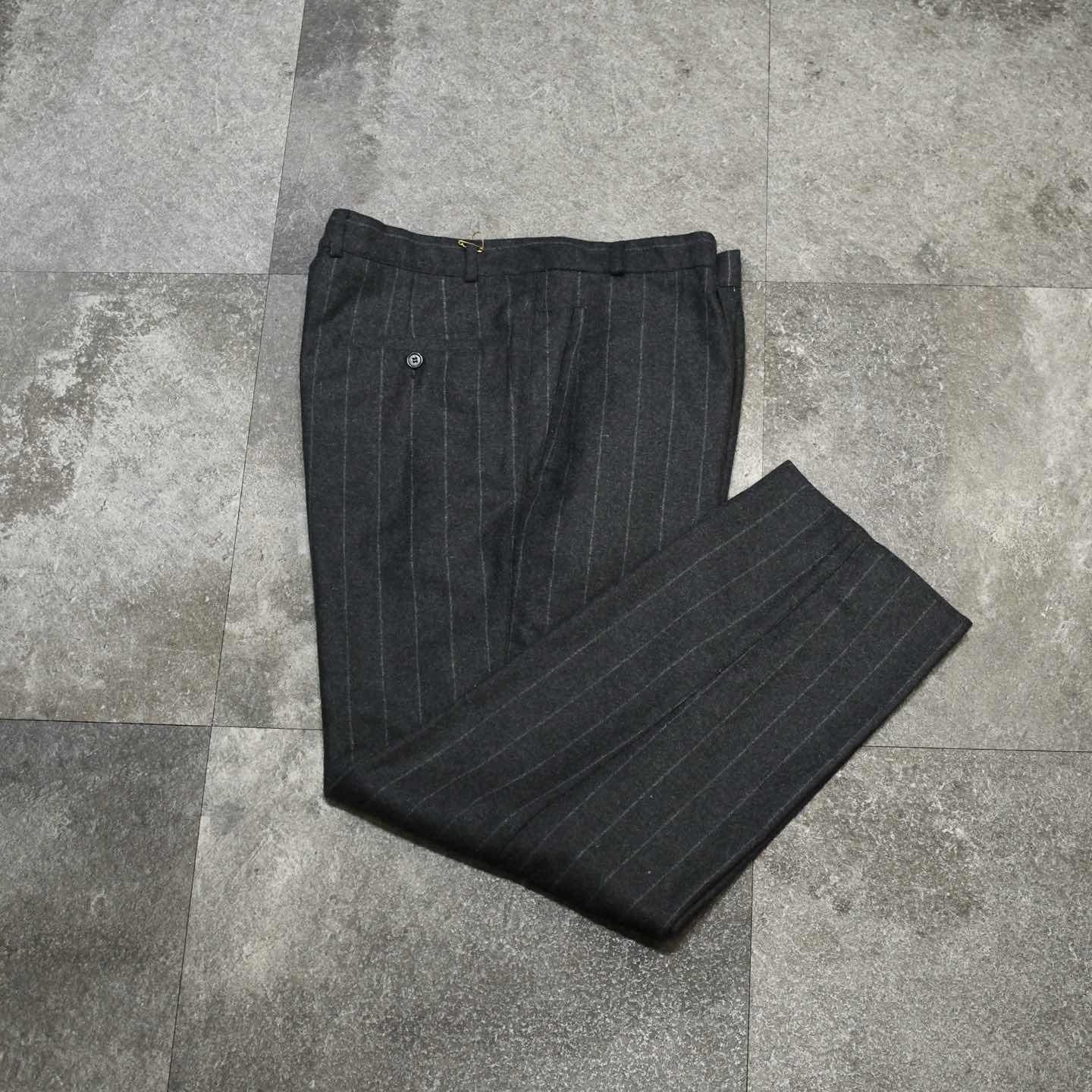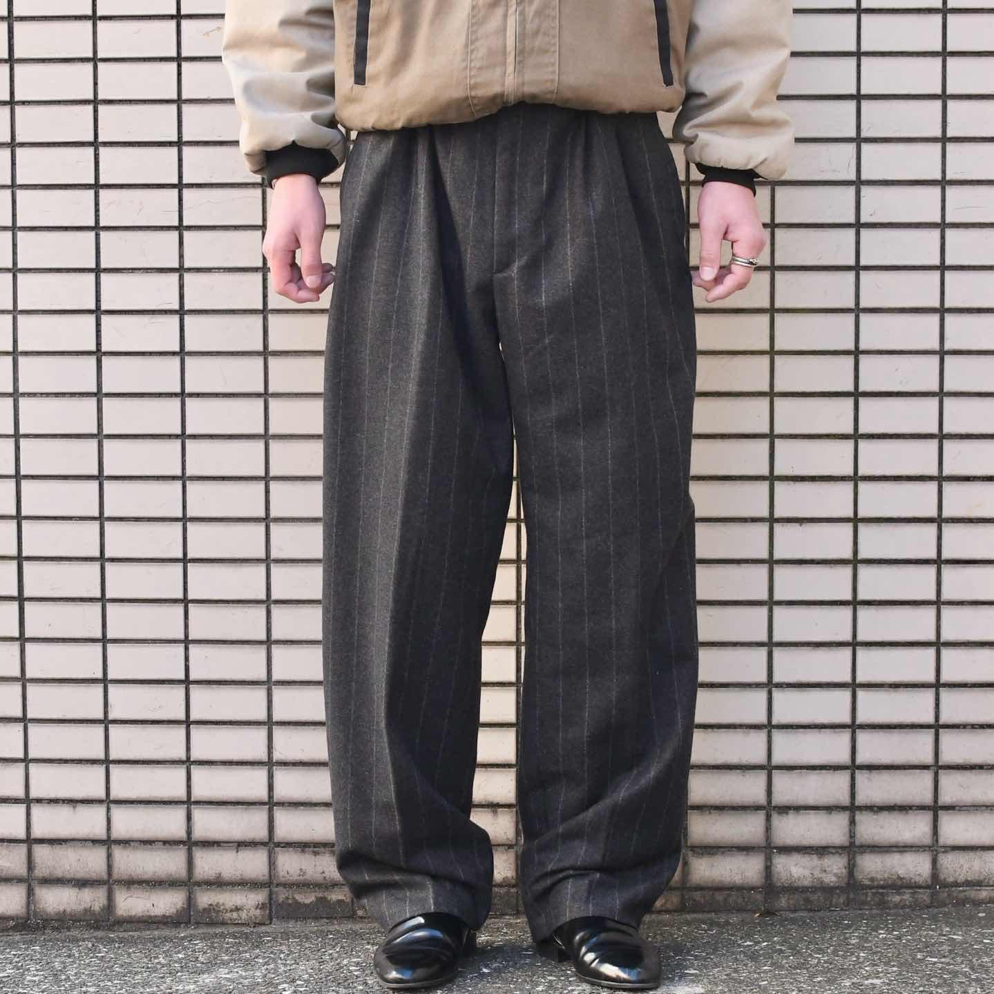 古着 ウールスラックス タックパンツ ストライプパンツ チャコールグレー