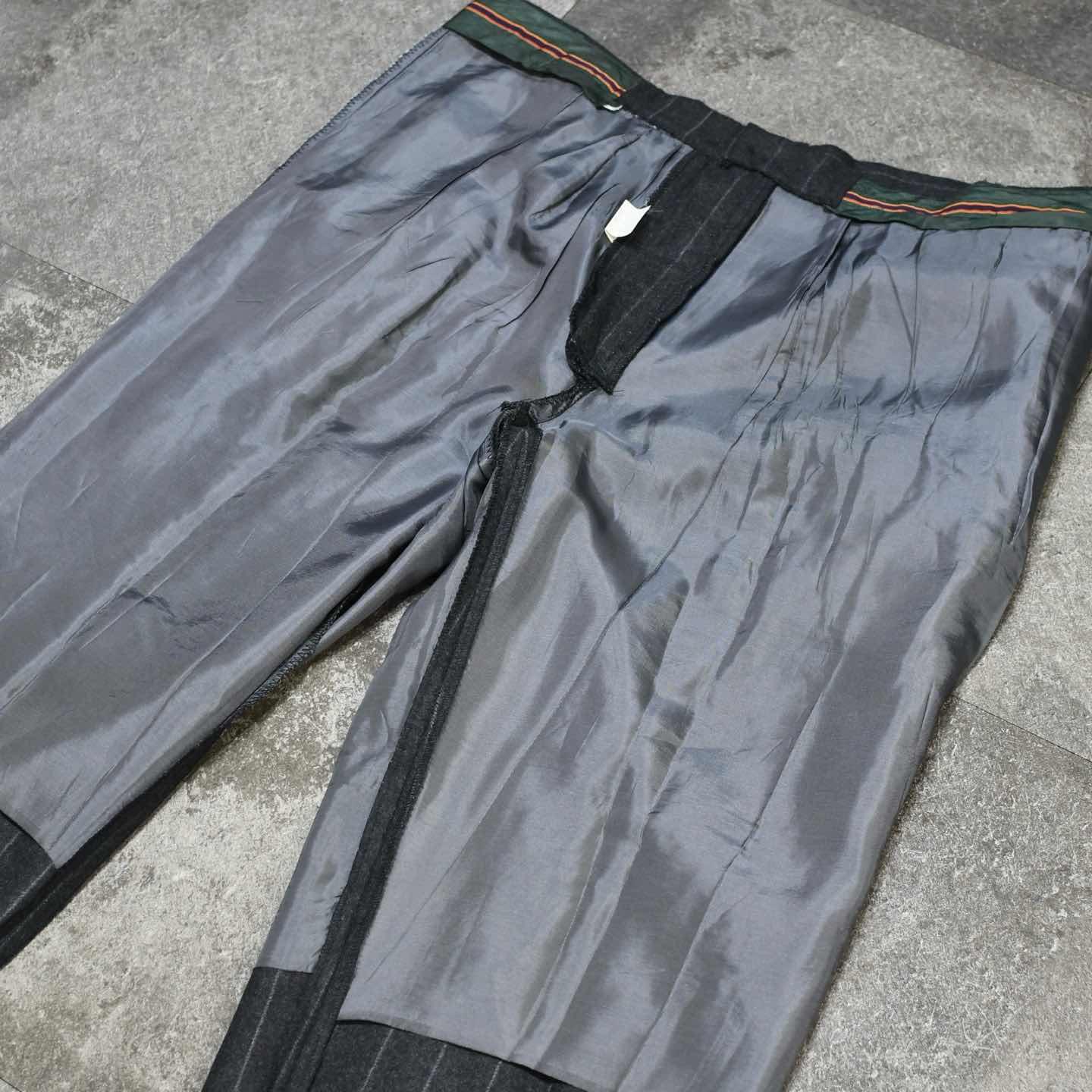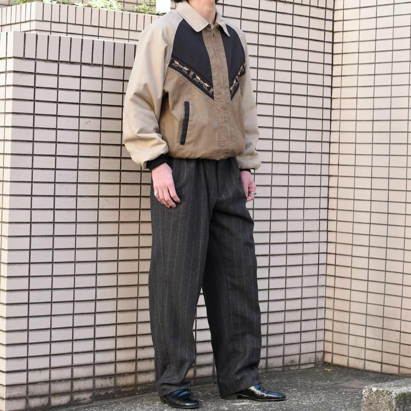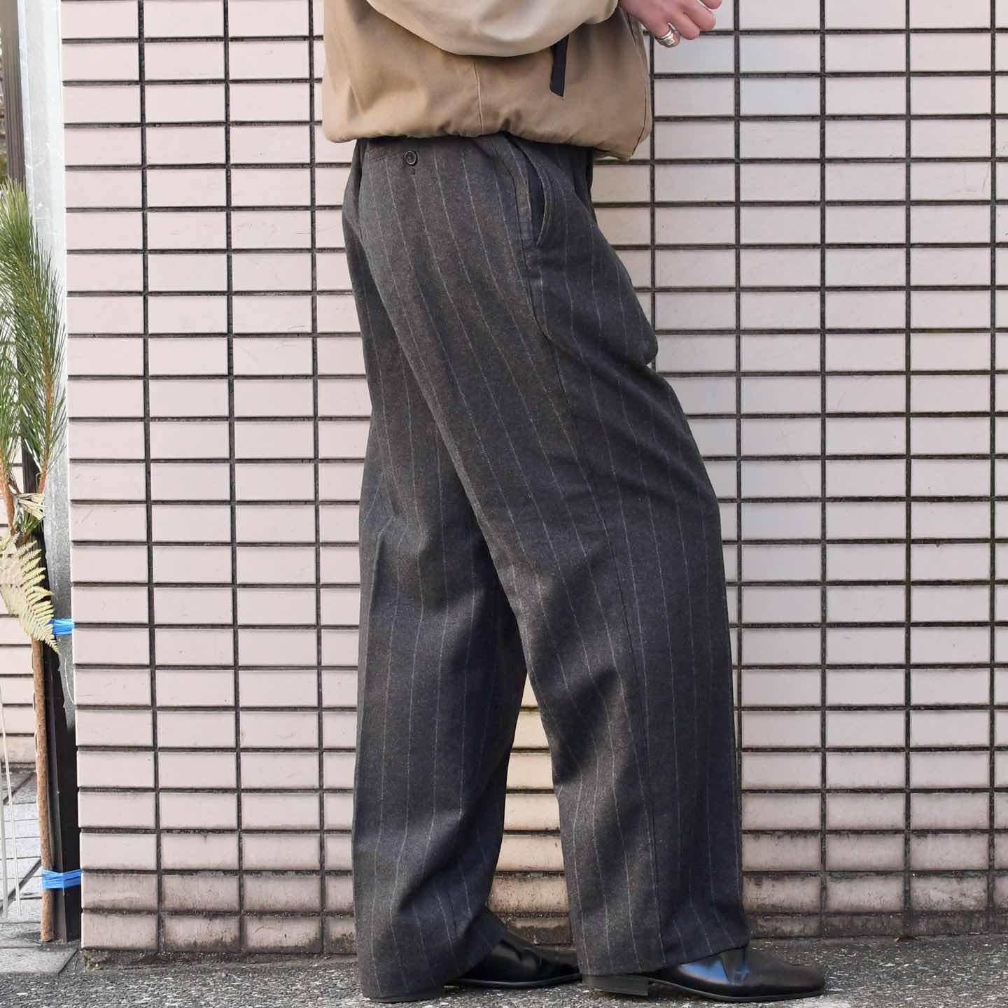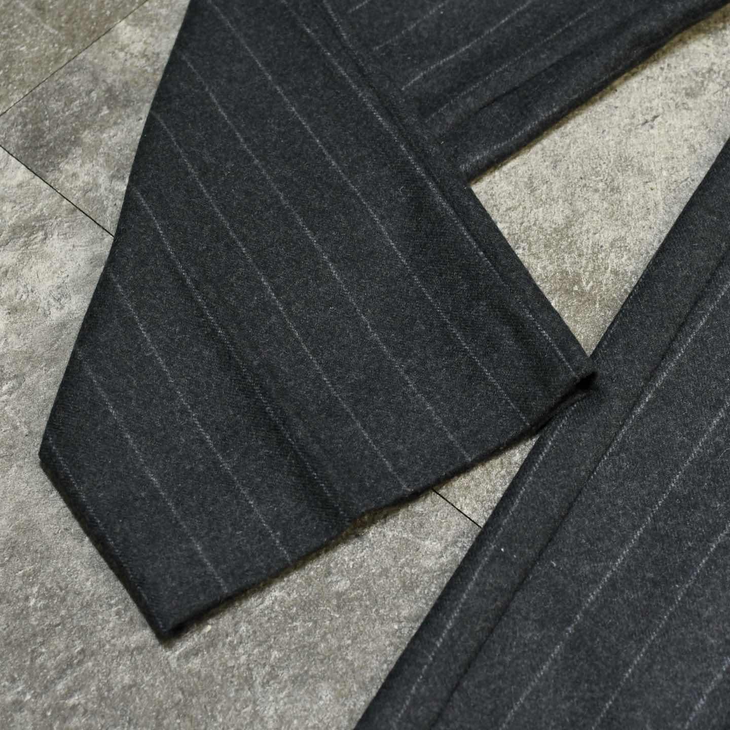 古着 ウールスラックス タックパンツ ストライプパンツ チャコールグレー