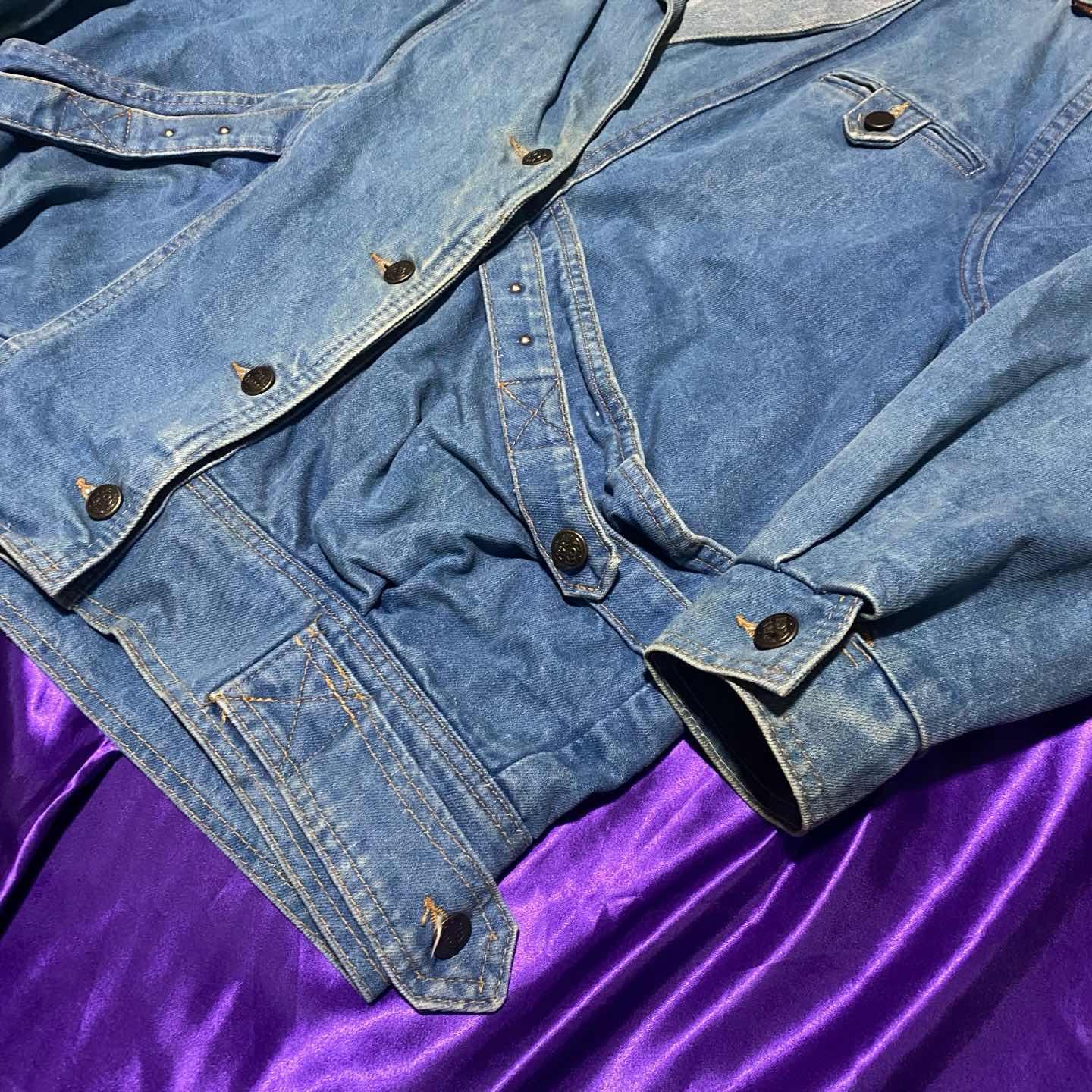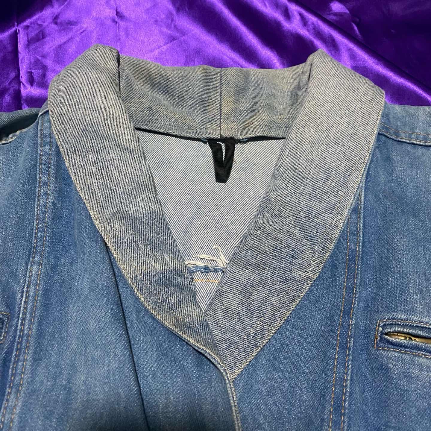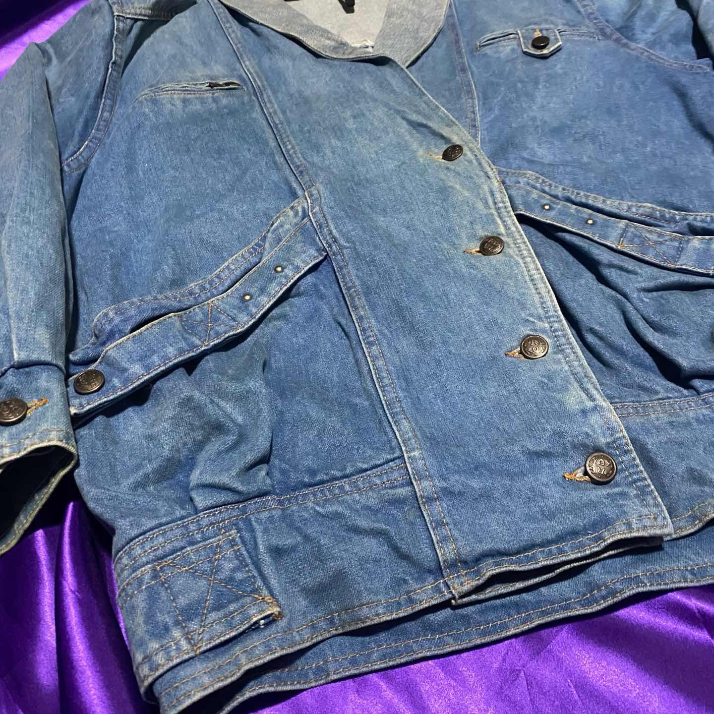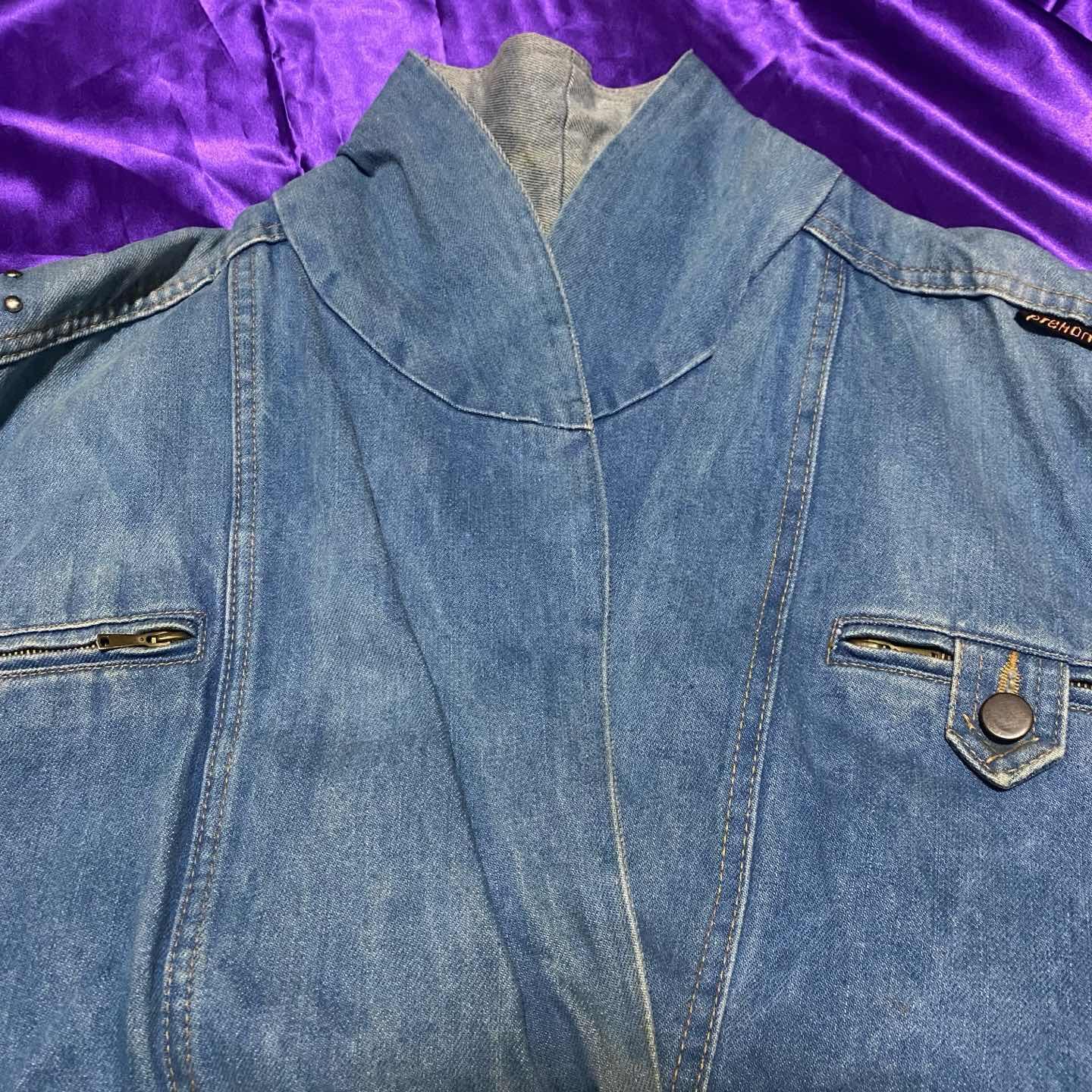 デザインが可愛いデニムライダースジャケット。 デニムのテーラードもあんまりないですがこっちはもっとないですね。 襟を立てても使えるので変化も楽しめます。 春秋は羽織りとして、真冬はインナーとして活躍してくれます。 被りたくないデニムアイテム探してる人にぴったりのアイテムです。 気になった方はぜひ。 SIZE:- 肩幅52 身幅120 袖丈58 着丈68.5
