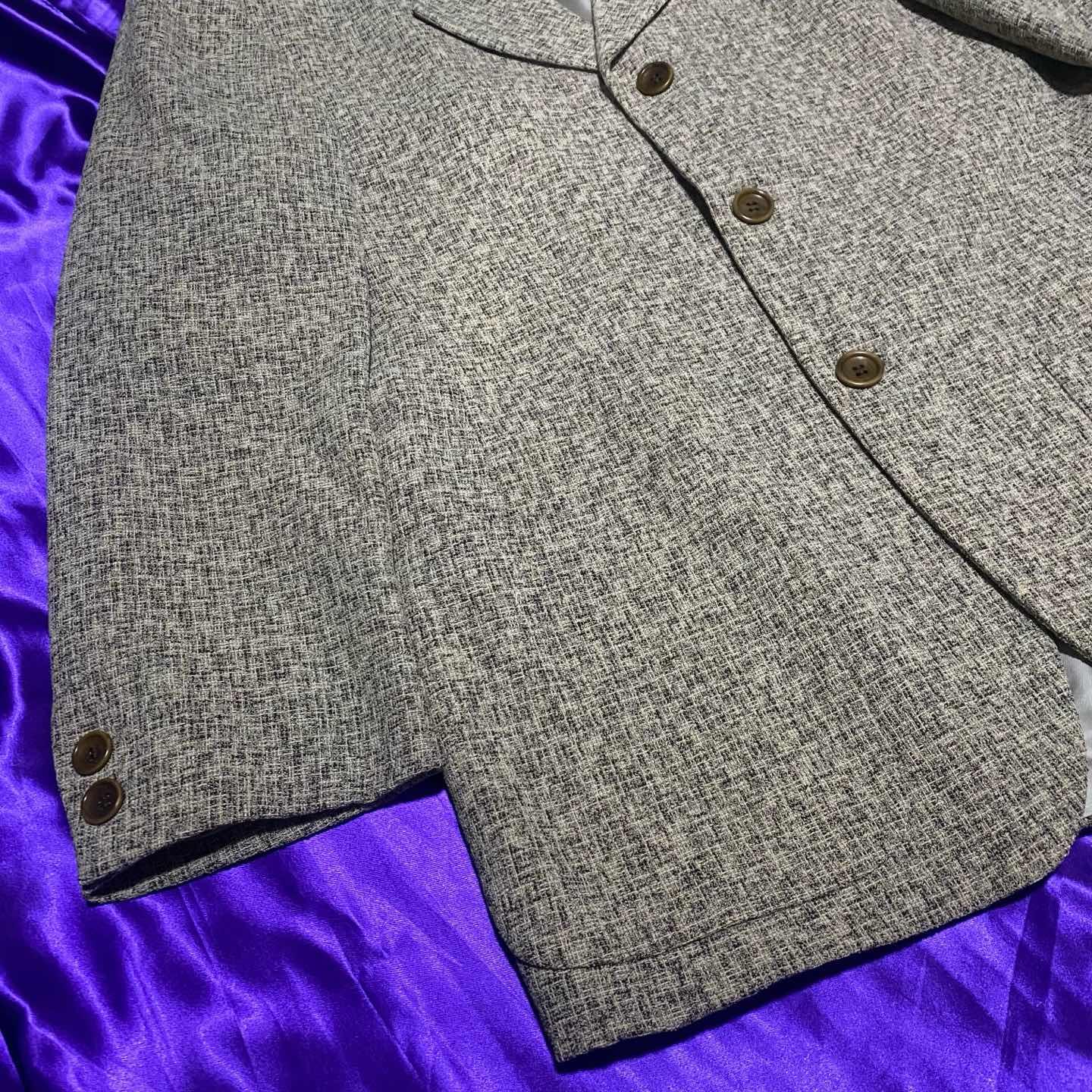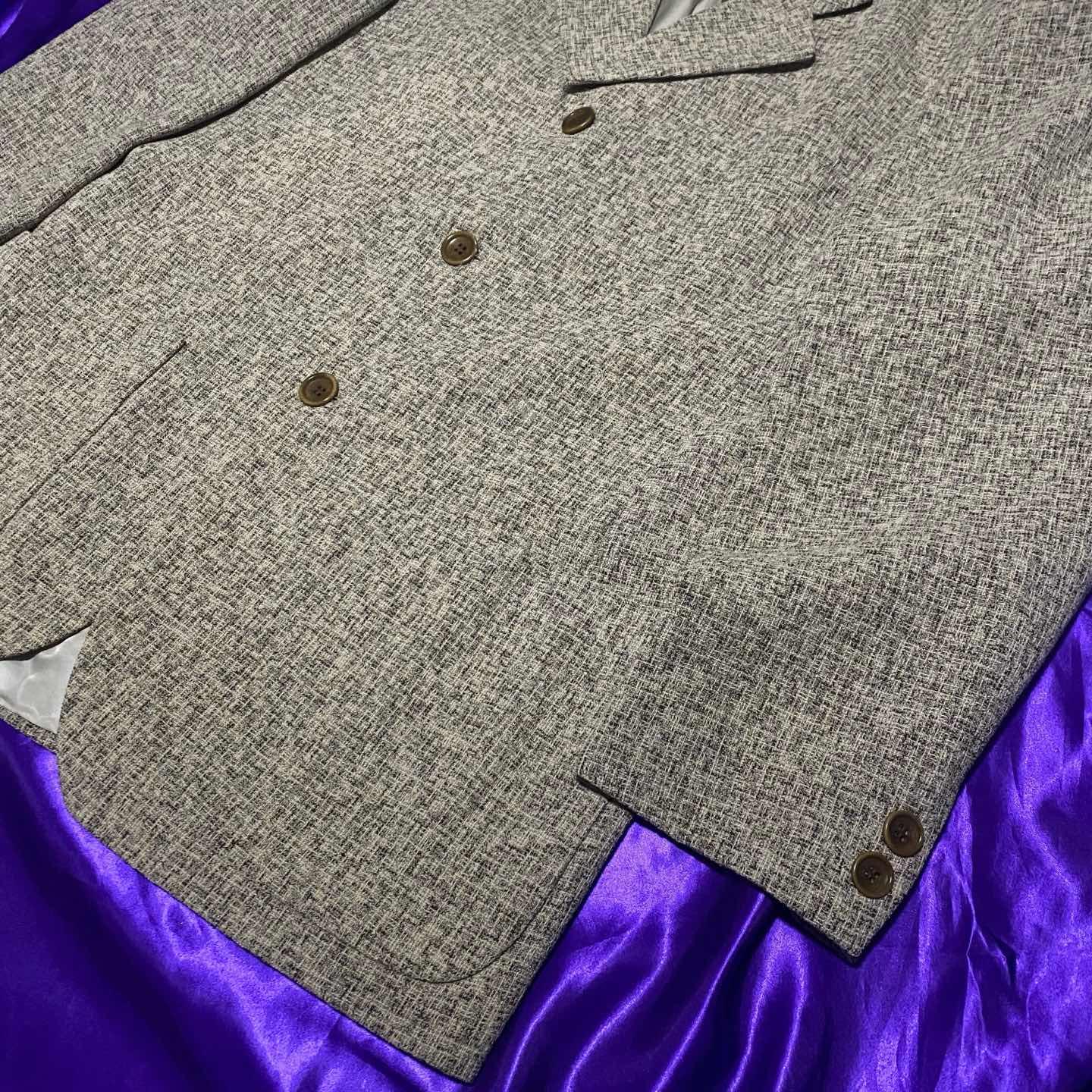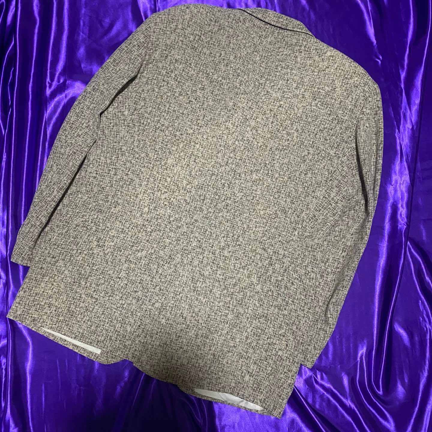 KENZOの総柄テーラードジャケット。 KENZOはうちのお店では初登場ですね。 簡単に紹介すると1970年に日本人のKenzo Takadaが作ったラグジュアリーブランドでフランスで創業しました。 虎のロゴが有名ですね。 今ではカジュアルよりのアイテムが多いですが古着で探してみるとこのアイテムのようにテーラードジャケットや綺麗めアイテムもけっこうあり柄が可愛いものも多いのでオススメです。 このアイテムは3つボタンがあり着丈も少し長めなのでコートのような感覚でも着ることができます。 サイズ十分なのでジャケット重ねとかしてみても面白いですよ。 気になった方はお早めに。 SIZE:3 肩幅51 身幅114 袖丈62 着丈79.5