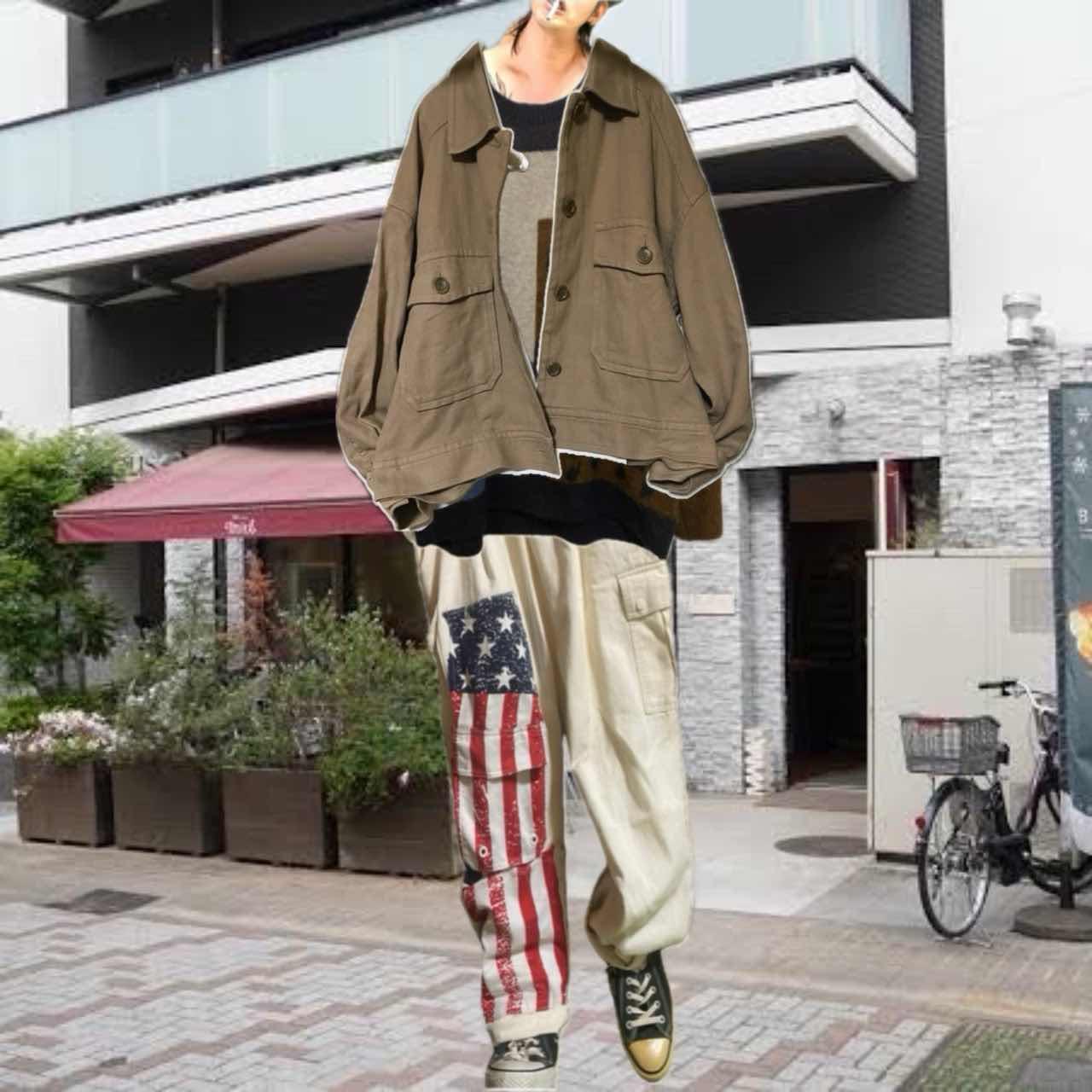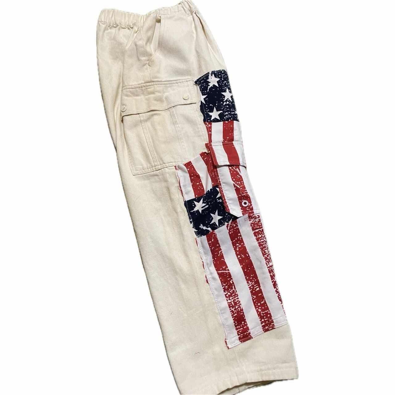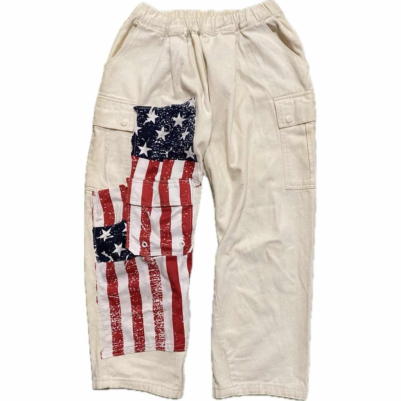 W66-90対応90s remke 星条旗多機能bottom 90s カジュアルにシルエットのいいボトムを、もっとカッコよくしたくて、、、 星条旗縫い付けました、写真みていただけますと幸いですが、デザインの中に、かくされた、ポケットや、サイドポケットなど、多機能かつ、マルチにかつやく、さらに、コーデも、様々なアイテムと、気回すことができますので、 アメリカの国旗を。みせつけて、お洒落を、自由に楽しんで下さい^_^、 ▷size◁ 平置き片面採寸【㎝表記】 表記size 【※ウエストのみ、メジャーで一周採寸】 ウエスト66-90対応Lとしときます 股上33 股下64 股下短いと勘違いする方へ、股上深いだけですよ、理由ハイウエストも決めれるようです、 腿渡り幅30 裾幅23 モデル170㎝/普通体型、30インチジャストな体型参考に、 ▷material◁ バイアスcotton ▷condition◁ カッコ良くしあげて、最高です^_^ ※入念にチェックは、しておりますが、vintage/usedの特性ご理解下さい