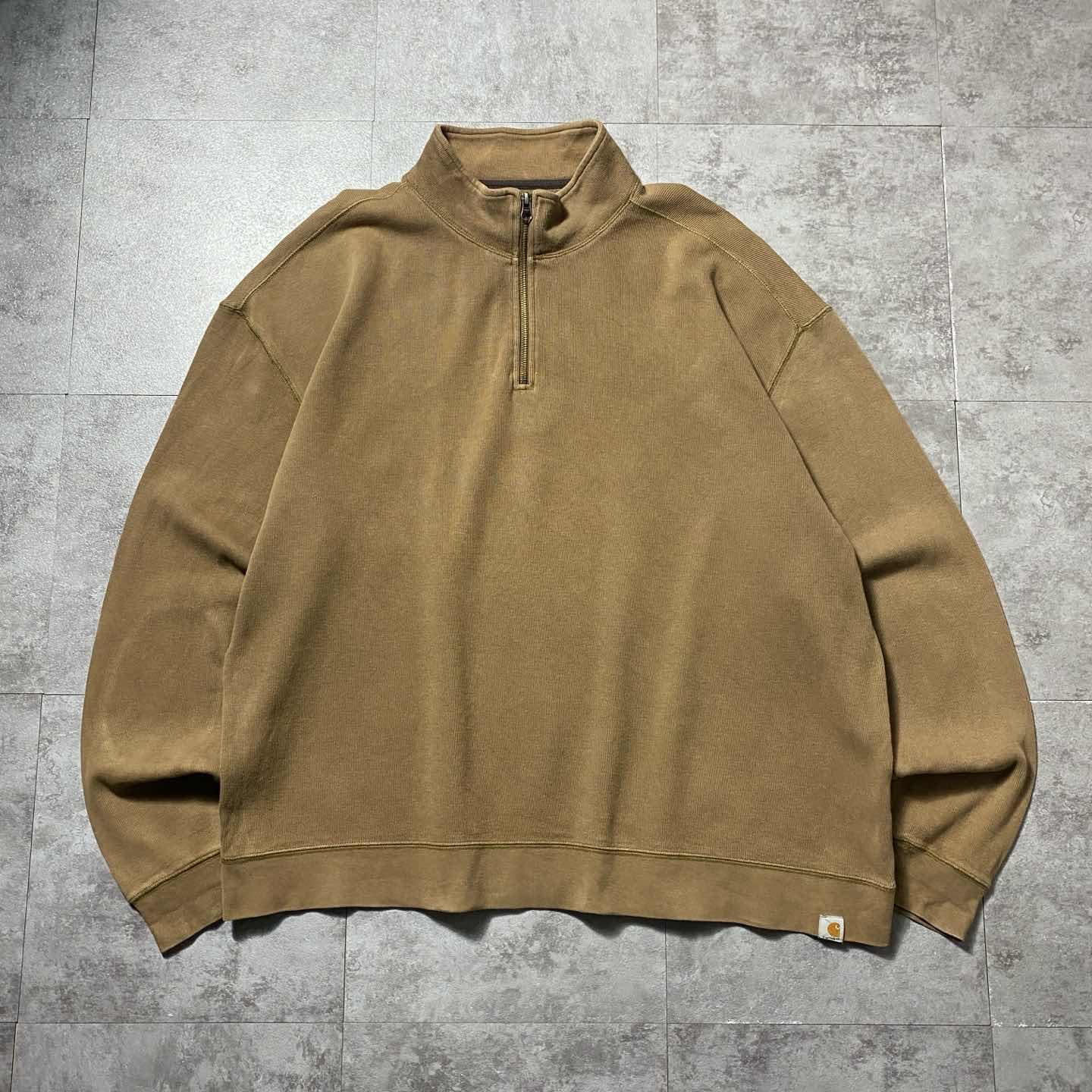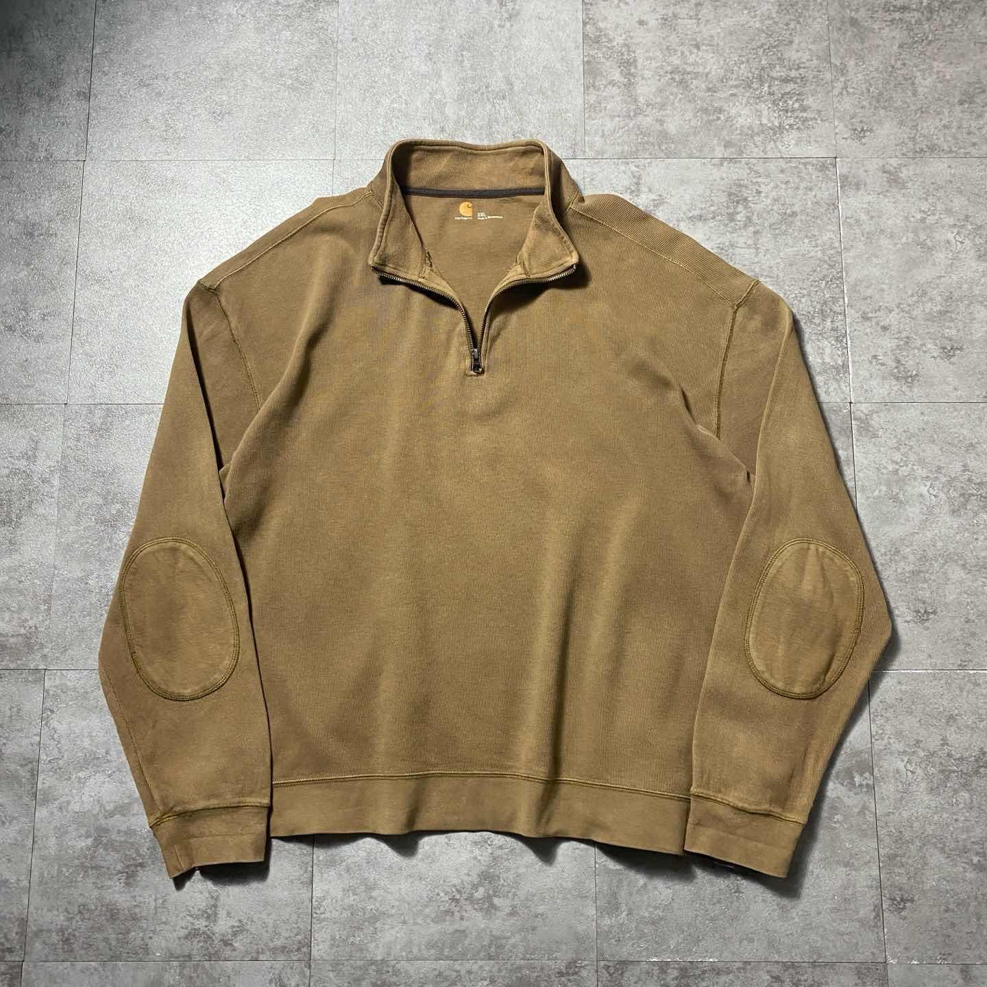 carhartt ハーフジップ エルボーパッチ ブラウン スウェット トレーナーん