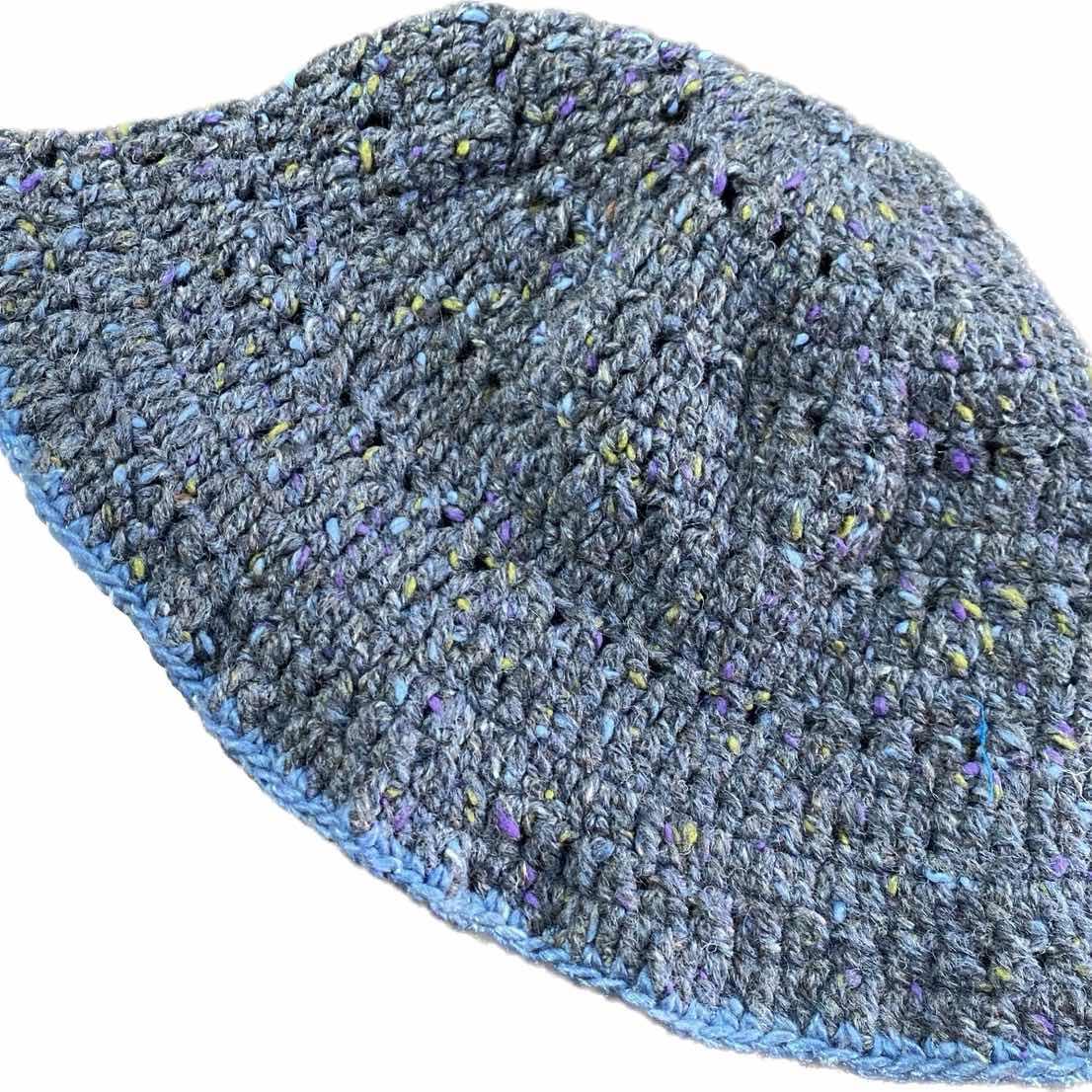 70s 男女OK.職人手編み ウール クロシェ2way ハット