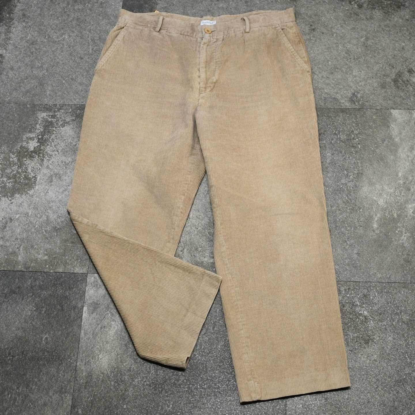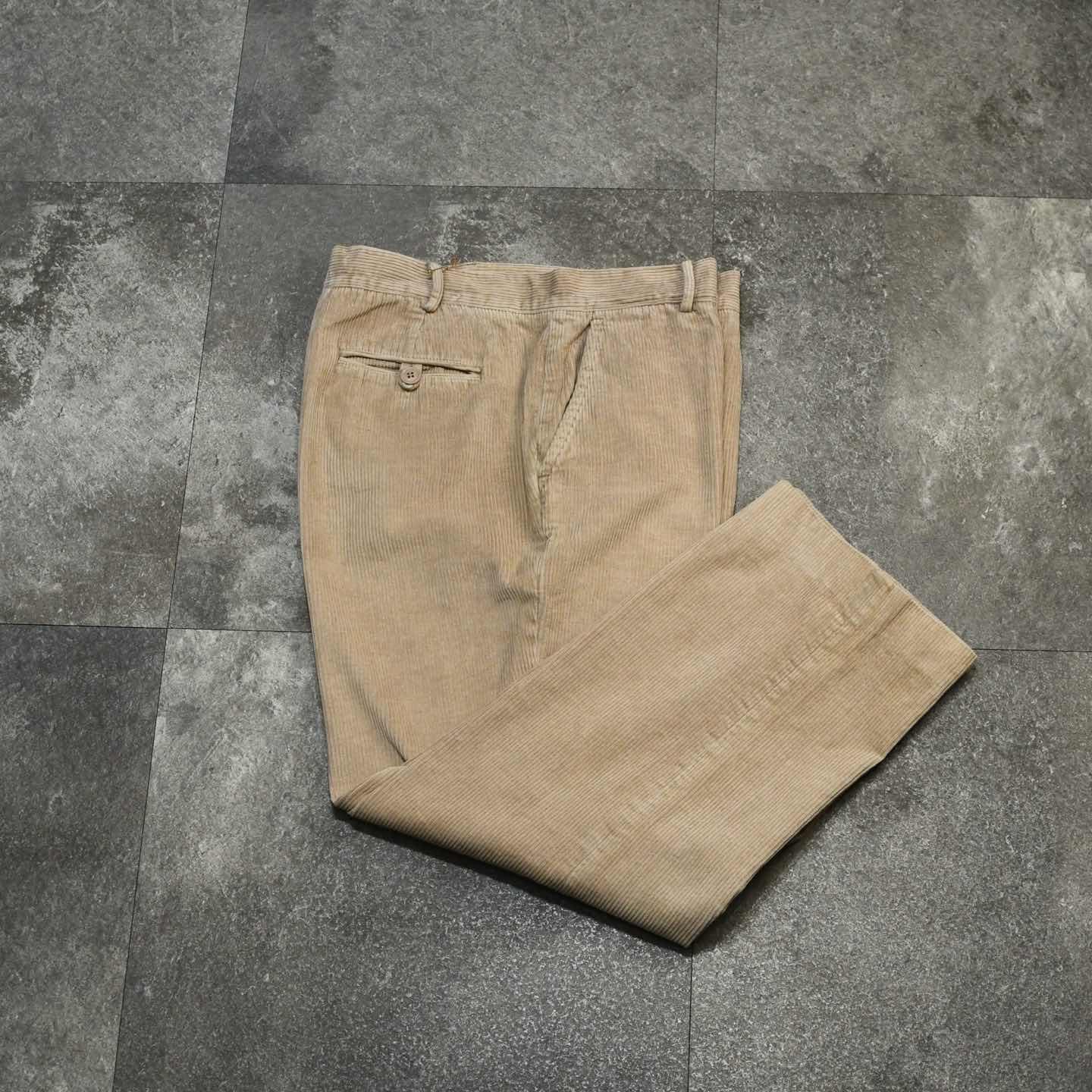 SIZE:- ウエスト93cm 総丈100cm 股下72cm わたり38cm 裾幅24.5cm fabric/cotton 着用画像 173cm/58kg ひと通り、深みのあるカラーのパンツは 手元に集まった方、こんな落ち着きのあるカラーを パンツに取り入れてみるのもどうでしょう。 ベージュのパンツを手元に置くとなると、 チノパンが初めに浮かびますが、チノパンよりも 野暮ったさが無く、尚且つ生地に表情を持つ コーデュロイで、幅広いコーデに落とし込めるのが◎ 裾までしっかりと太さを残した個体だからこそ、 フォーマル過ぎず、カジュアルにも振れる1本です。 ※裾上げ等のレングス直しにつきましては、 裾上げ方法によっては、別途料金が 発生する場合がございます。 購入前に、必ずご連絡お願い致します。 また、購入後の直しには対応出来かねます。 ※撮影状況により、実物と多少色が異なる 場合がございます。 ※古着を取り扱っているため、気づかない汚れや ほつれがある場合がございます。 ※サイズは着用感で選んでおり、 表記サイズは説明欄の最初に記載しております。 old vintage ヴィンテージ used 80's 90's アメリカ古着 ユーロ古着 POLO RALPH LAUREN Eddie Bauer OLD GAP LANDS' END ランズエンド LLBean エルエルビーン オールドギャップ エディーバウアー ラルフローレン ブルックスブラザーズ Brooks Brothers などがお好きな方 #vintage #old #used #90s #80s #古着 #ヴィンテージ #LLBean #エルエルビーン #EddieBauer #エディーバウアー #oldgap #LANDSEND #NAUTICA #ラルフローレン #POLORALPHLAUREN #BrooksBrothers #コーデュロイパンツ #ワイドパンツ #スラックス