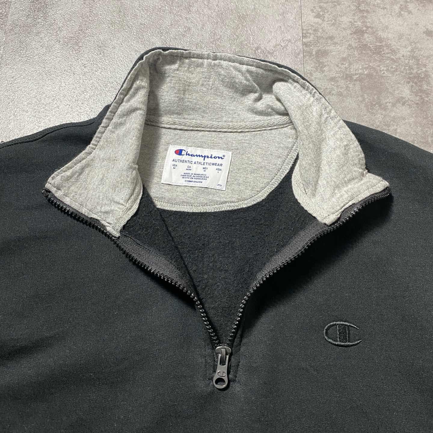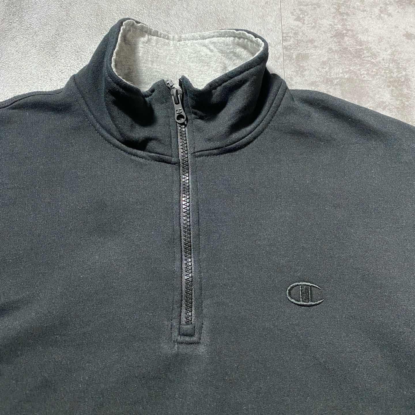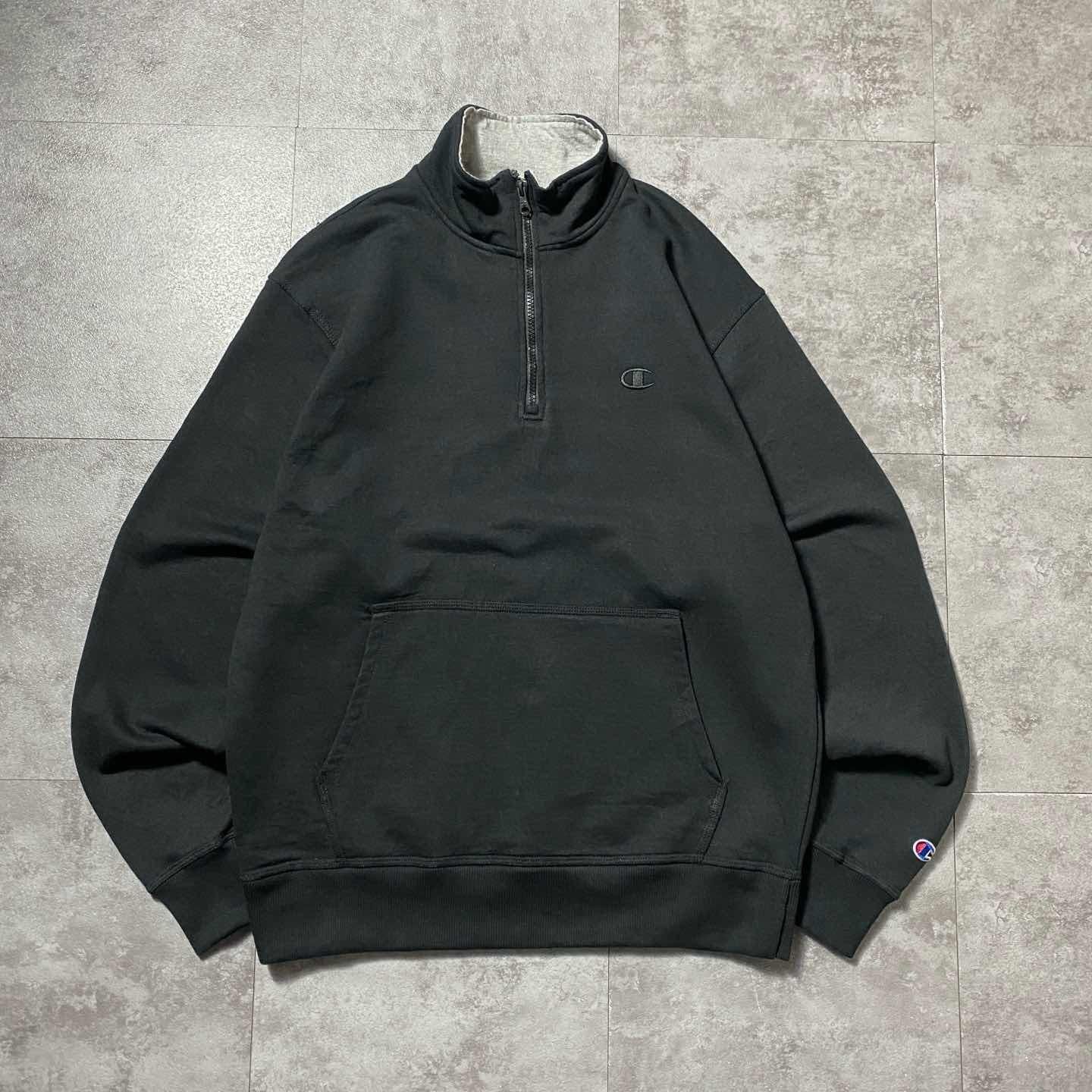 チャンピオン ハーフジップ 刺繍ワンポイント ブラック スウェット トレーナー