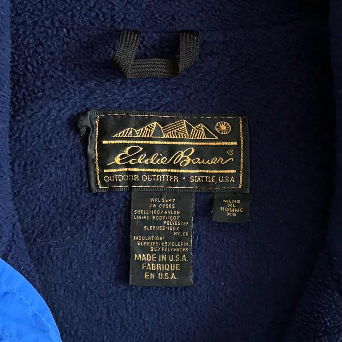 ○商品説明 80s USA製 EddieBauer エディバウワー。 色味の良いブルー。 しっかりアメリカ製です。 身幅広めの着丈短めボックスシルエットに なります。 是非。 ○サイズ 表記XL 平置き ・肩幅55cm ・身幅65cm ・袖丈65cm ・着丈63cm ○商品の状態 B A:使用感がほとんどなく、汚れやシミもなし B:多少使用感はあるが、汚れやシミも少ない C:使用感があり、汚れやシミがある D:使用感があり、大きな汚れや破れあり ○色 ブルー #80s#USA製#EddieBauer#エディバウワー#ウォームアップジャケット#ナイロンジャケット