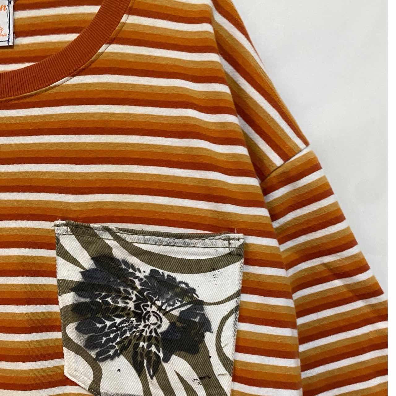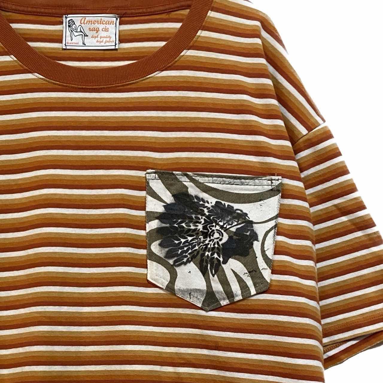 00s remake IndianポケットHTC ビックボーダーT 同じボーダーでも.オルタネイトボーダーに、レアカラーが、ワクワクする。1着 スタンダードなものだからこそ 少し手間をかけてかっこよくしたいと思いリメイクしました 同色の、ポケットがもともとあったのですが このポケット昨日は残したまま、その上に インディアンを別布にアートして、ポケットを取り付けました インディアンポケットの下にも サイレントポケット、元のポケットの、機能を活かして、 貴重品保護の、工夫もこらしてる、当店の、テクニックを使ったデザイン性と機能性を、追求した、リメイク、ぜひあなたのライフスタイルに取り入れていただけるとうれしいです 今回リメイクにはリメイクで、私がまたミリタリーのボトムが好きで作ったボトムをコーディネートに使いました。アメカジ好きとかにはたまらない商品となってますので、よろしくお願いします。 ▷color◁ ネームタグ写真がかなり実物に近いです ※ブラウザで異なる場合ありますがかなり実物には、近づけてます、 ▷size◁ 平置き片面採寸【㎝表記】 表記size XL使用ですが、2XLくらいあります 着丈/79 身幅/66 肩幅/63DS 袖丈 /40 DSは袖はハンガー採寸 ※多少の誤差は理解下さい 170センチ Mジャストの私が、着用してかなり、ゆったり、 【素材】 Hタイプ65/35 TCコットン 【状態】 良好 検品、洗濯、検品で、3回チェックして発送しますので、ご安心して、お買い求め下さい!!