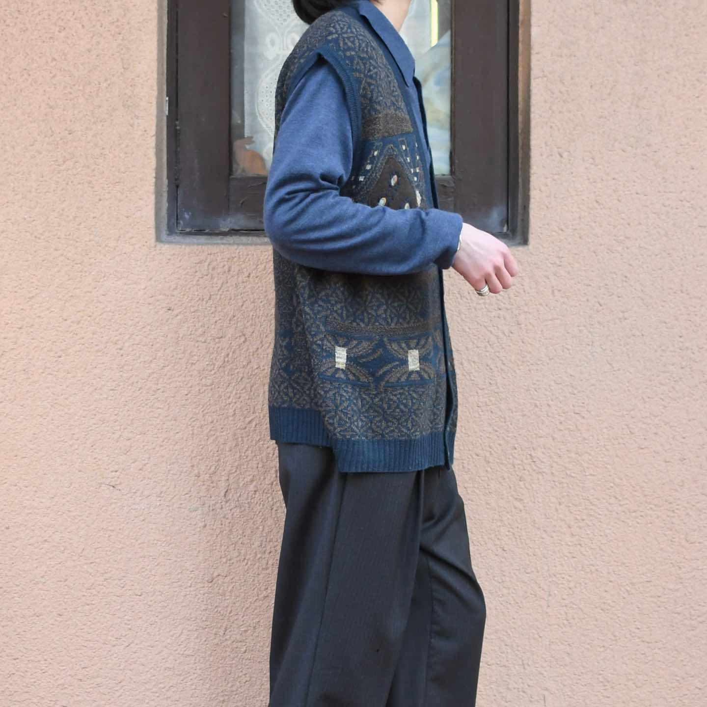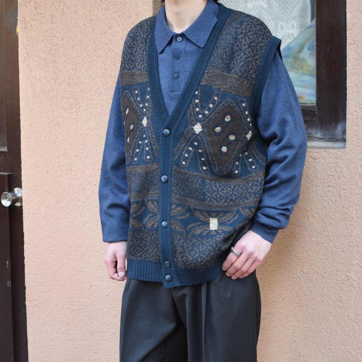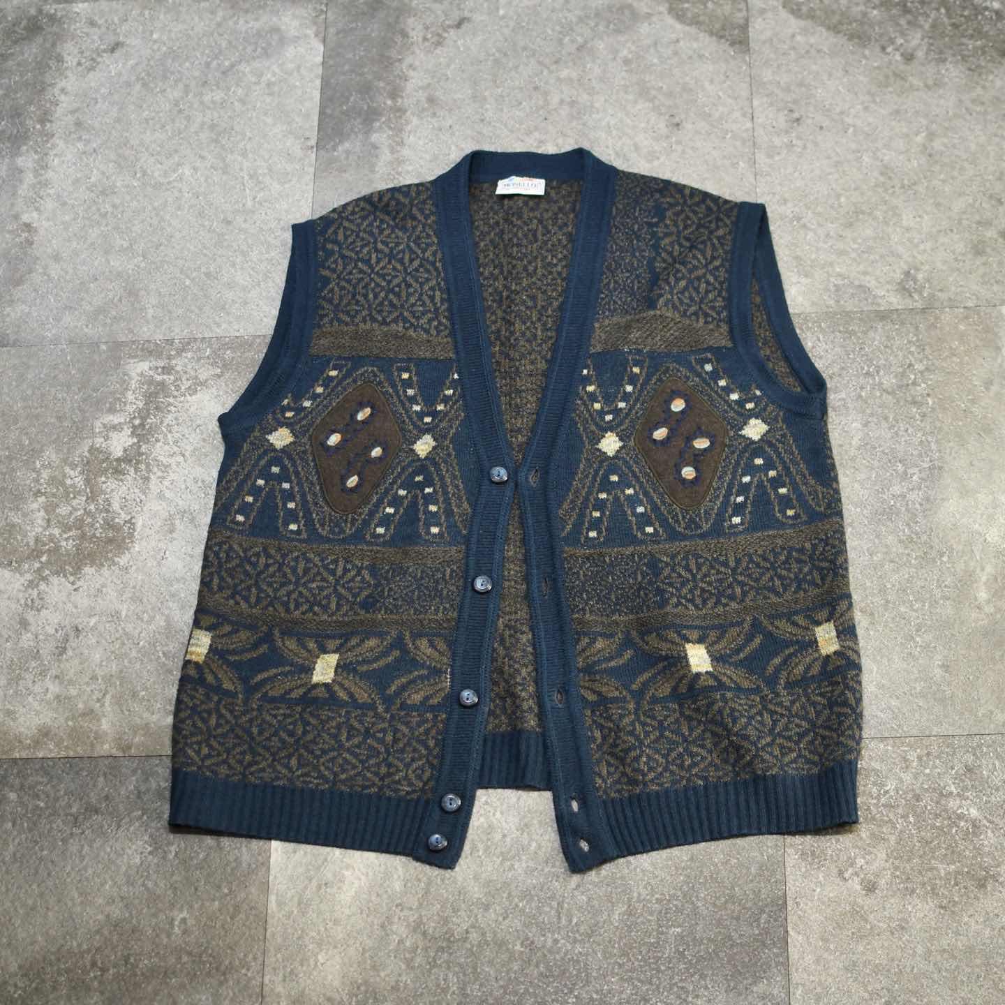 古着 デザイン ニットベスト ベスト セーター アクリル ウール ネイビー 紺色