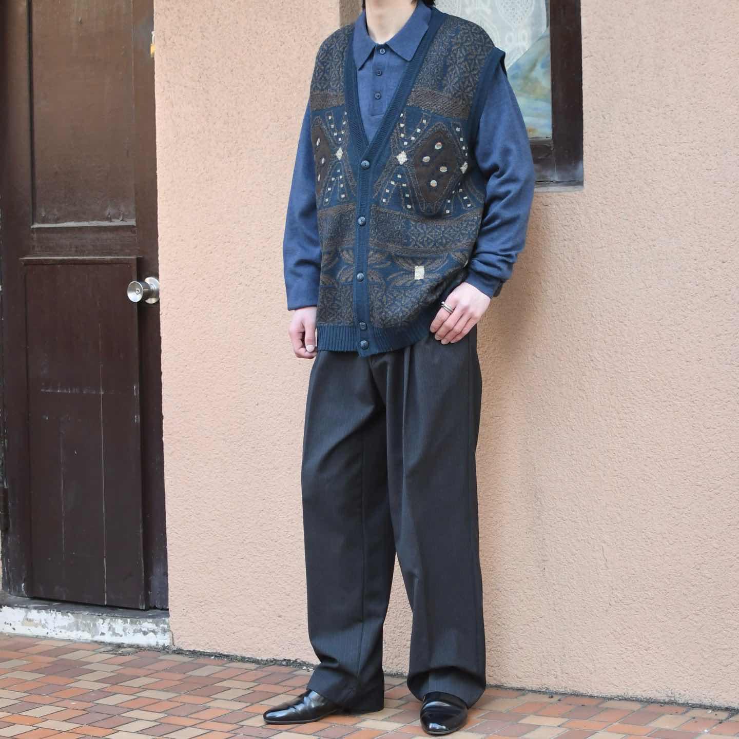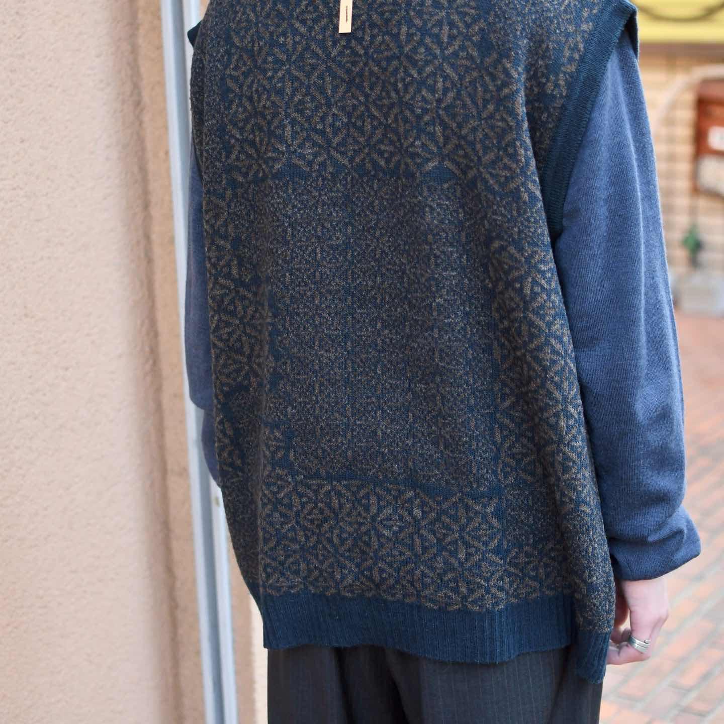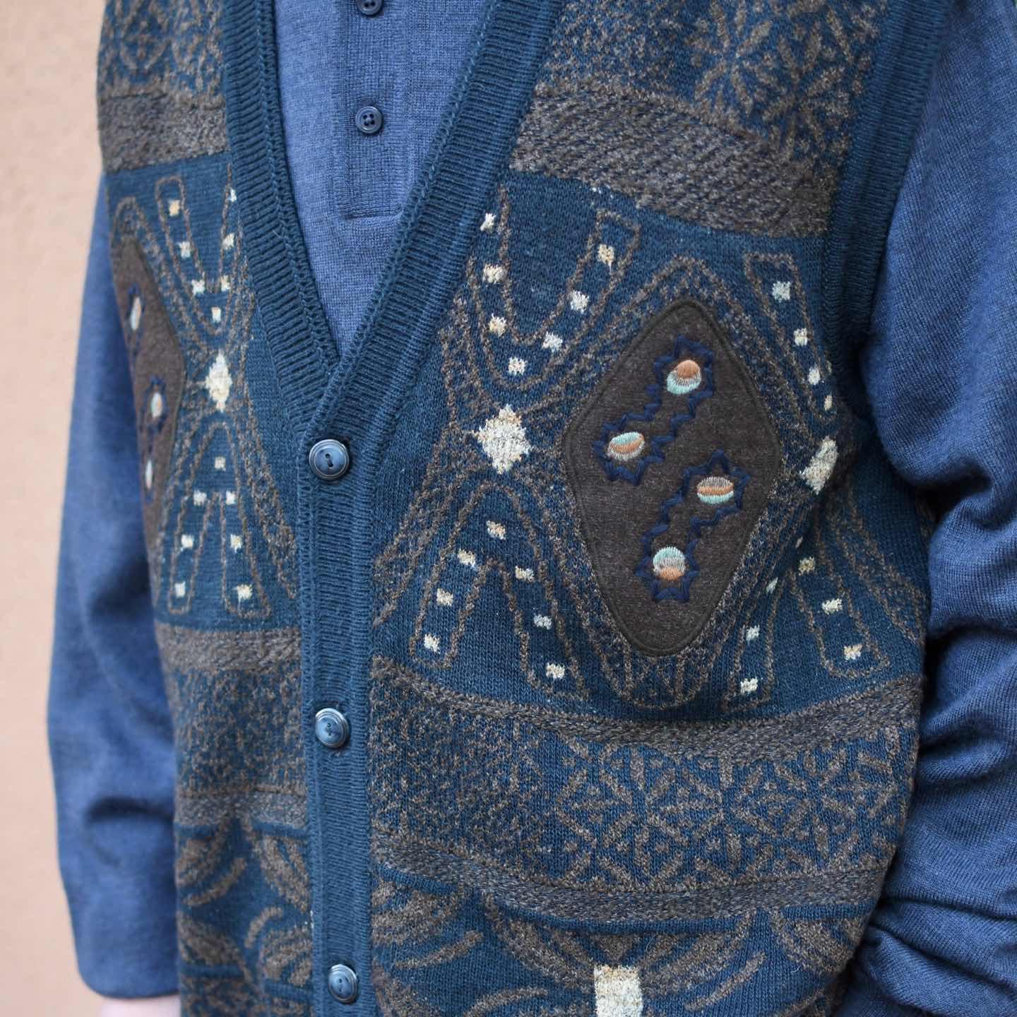 古着 デザイン ニットベスト ベスト セーター アクリル ウール ネイビー 紺色