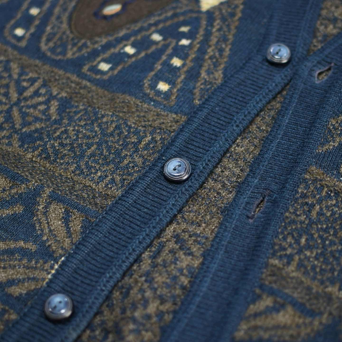 SIZE:- 着丈74cm 肩幅52cm 身幅60cm fabric/質感よりwool・acrylic made in Italy 着用画像 173cm/58kg ニットベストの中でも静かに高い デザイン性を感じた1着。 スタイリングに落とし込みやすいカラーで 大胆に、そしてきめ細かく編み込まれた柄。 さらに背面は規則正しく並んだ柄に見えて、 独特なデザインが浮かび上がり、 より雰囲気を昇華した逸品です。 ニットベストの雰囲気に馴染んだ ボタンまで抜かりなく...◎ ※撮影状況により、実物と多少色が異なる場合が ございます。 ※古着を取り扱っているため、気づかない汚れや ほつれ等がある場合がございます。 ※サイズは着用感で選んでおり、 表記サイズではございません。 表記サイズは説明欄の最初に記載しております。 古着 オーバーサイズ old vintage ヴィンテージ used 80's 90's アメリカ古着 ユーロ古着 POLO RALPH LAUREN Eddie Bauer OLD GAP LANDS' END ランズエンド LLBean エルエルビーン オールドギャップ エディーバウアー ラルフローレン ブルックスブラザーズ Brooks Brothers ニット ウールニット アクリルニット などがお好きな方 #vintage #オーバーサイズ #old #used #90s #80s #古着 #ヴィンテージ #アメリカ古着 #ユーロ古着 #LLBean #エルエルビーン #EddieBauer #エディーバウアー #oldgap #オールドギャップ #LANDSEND #ランズエンド #NAUTICA #ノーティカ #ラルフローレン #POLORALPHLAUREN #ブルックスブラザーズ #BrooksBrothers #ベスト #ニットベスト #デザインニット #ニット #セーター