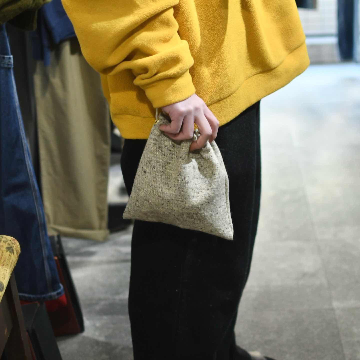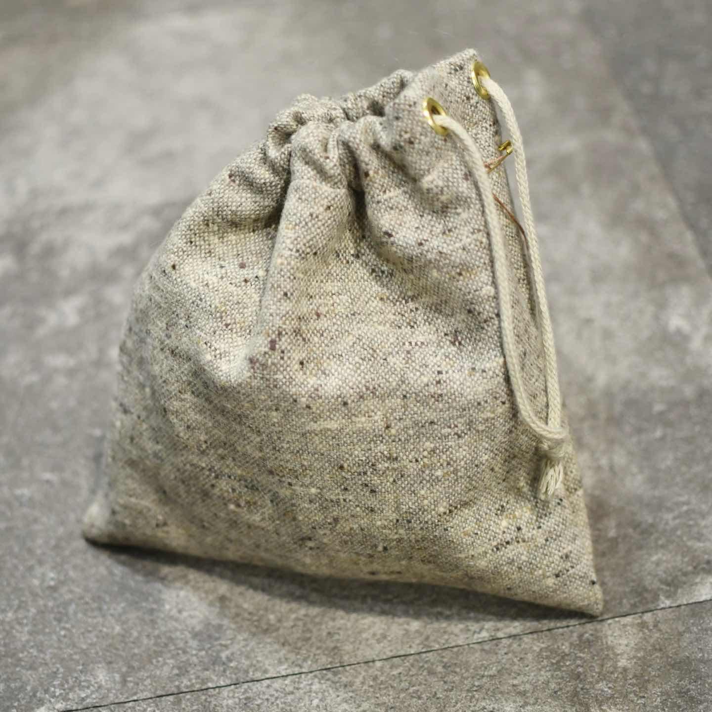 古着 ウール ネップ 巾着 ハンドメイド リメイク アイボリー