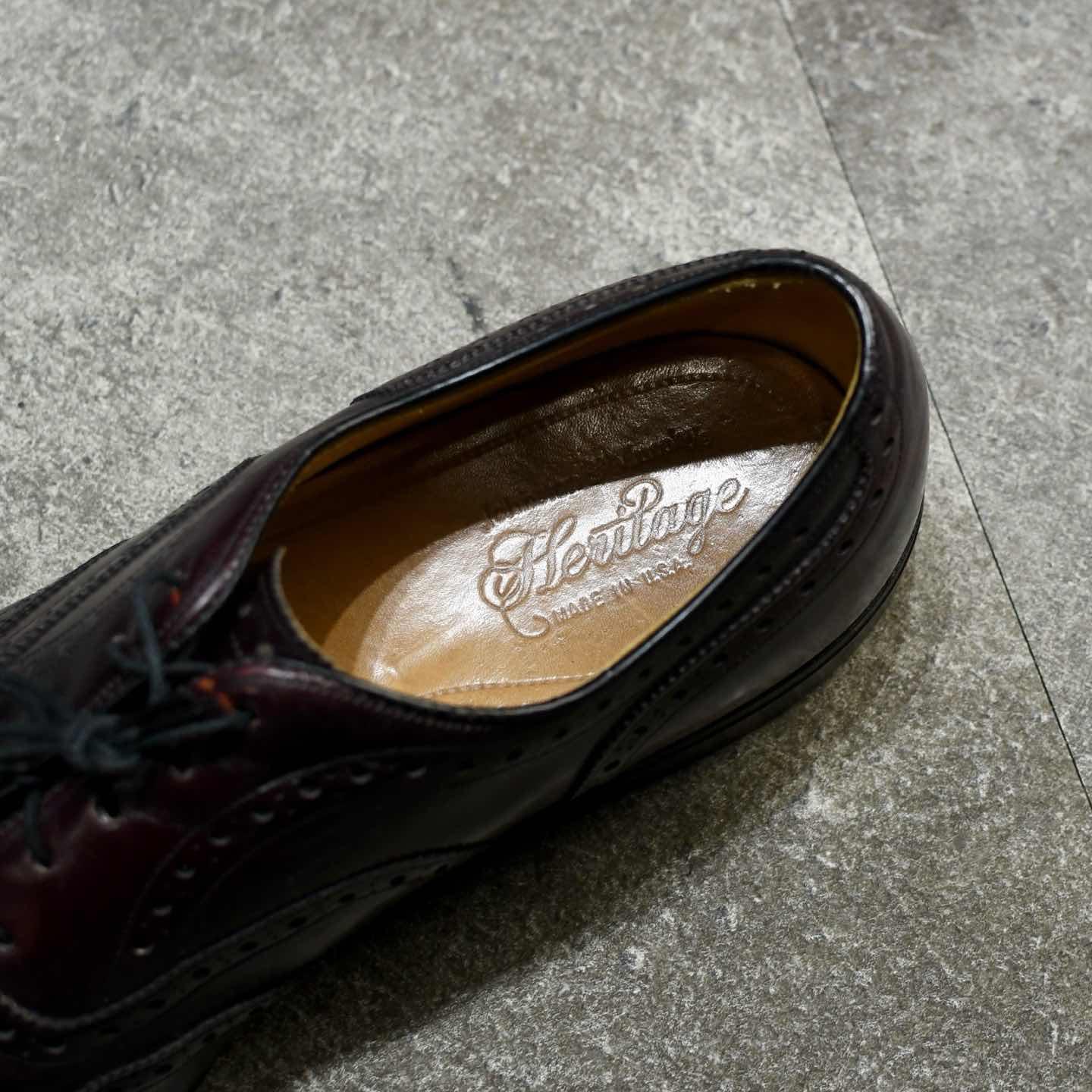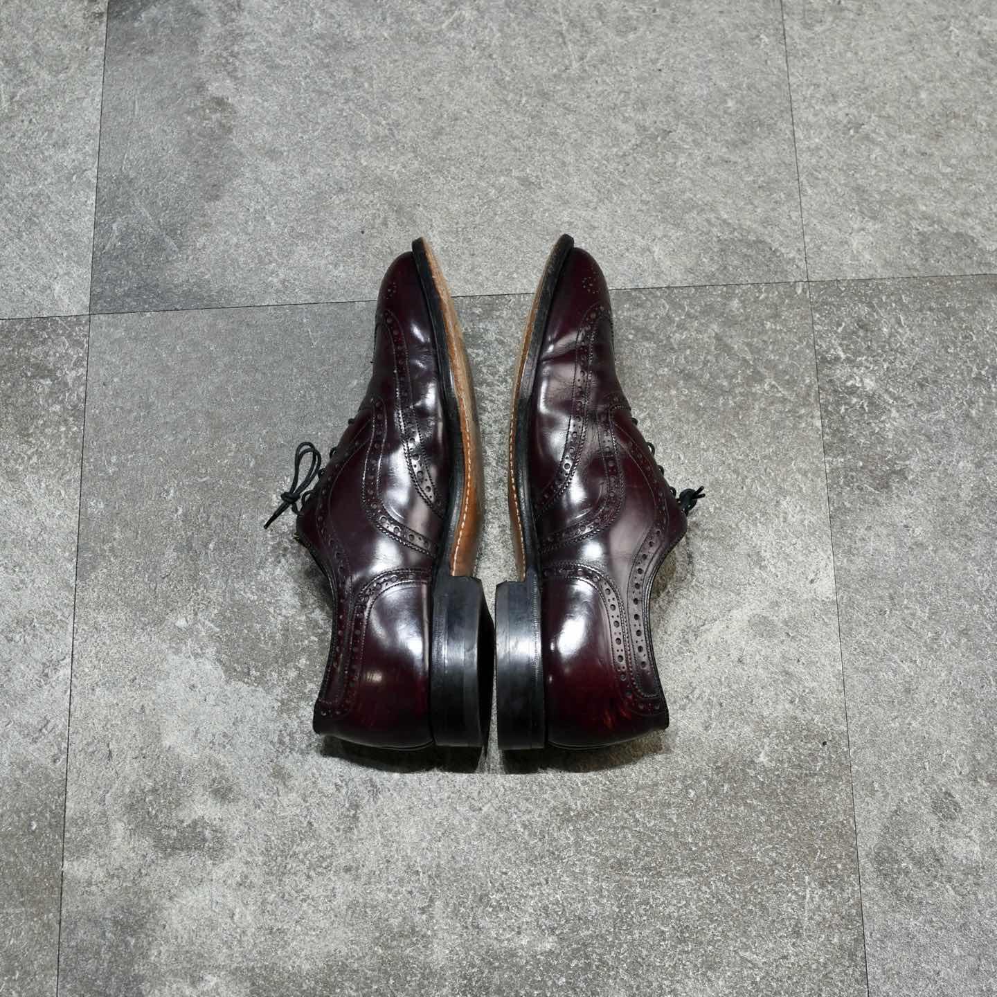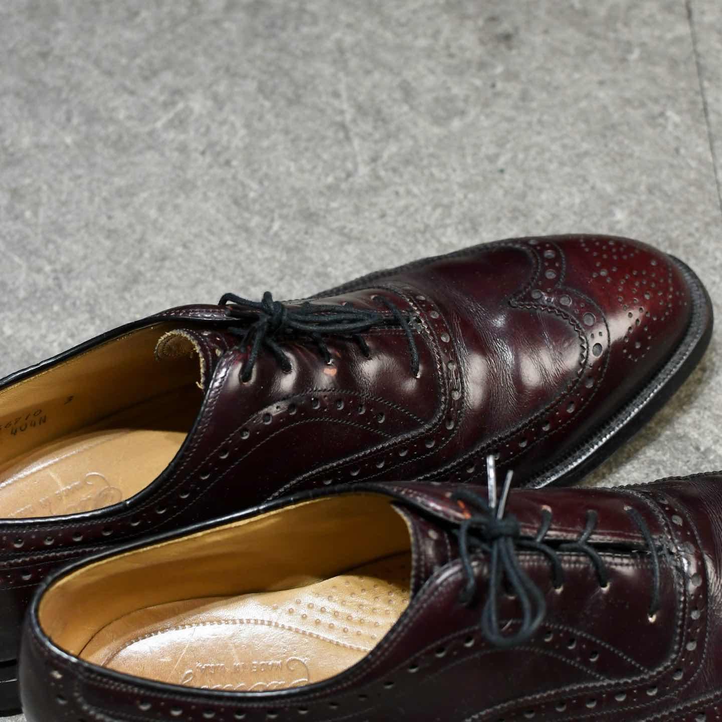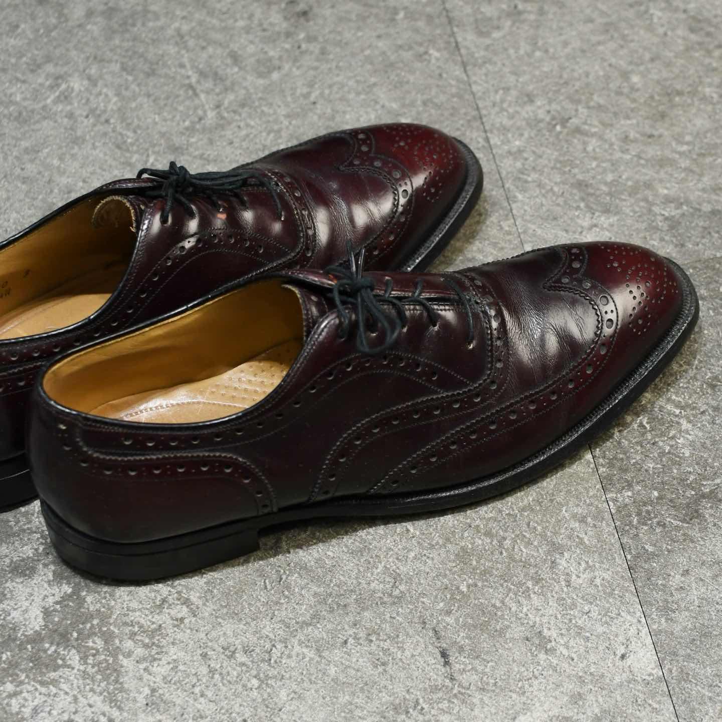 サイズ:9 1/2 D (27.5cm程度) アウトソール:31.5cm 1850年創業の老舗アメリカブランド "Johnston & Murphy" 今回ご紹介するアイテム同様、レザーシューズの 印象が強いブランドのひとつで、アメリカ 歴代大統領の革靴を手掛けていることでも有名です。 中でもこちらは、深みのあるバーガンディ色に、 ウイングチップ仕様という上品さを纏う1足。 革靴は特に、無難に黒を選びがちですが そこに捻りを加えてこんな色味で、 よりスタイリングに深みを与えてみてはどうでしょう。 ※靴の形状により、普段着用出来るサイズでも 着用出来ない場合がございます。 ※撮影状況により、実物と多少色が異なる場合が ございます。 ※古着を取り扱っているため、気付かない汚れ等がある場合がございます。 古着 オーバーサイズ old vintage ヴィンテージ used 80's 90's アメリカ古着 ユーロ古着 POLO RALPH LAUREN Eddie Bauer OLD GAP LANDS' END ランズエンド LLBean エルエルビーン オールドギャップ エディーバウアー ラルフローレン ブルックスブラザーズ Brooks Brothers バーガンディ ワインレッド ブラウン 茶色 革靴 ドレスシューズ ウイングチップ などがお好きな方 #vintage #オーバーサイズ #old #used #90s #80s #古着 #ヴィンテージ #アメリカ古着 #ユーロ古着 #LLBean #エルエルビーン #EddieBauer #エディーバウアー #oldgap #オールドギャップ #LANDSEND #ランズエンド #NAUTICA #ノーティカ #ラルフローレン #POLORALPHLAUREN #ブルックスブラザーズ #BrooksBrothers #レザーシューズ #革靴 #ウイングチップ #ドレスシューズ