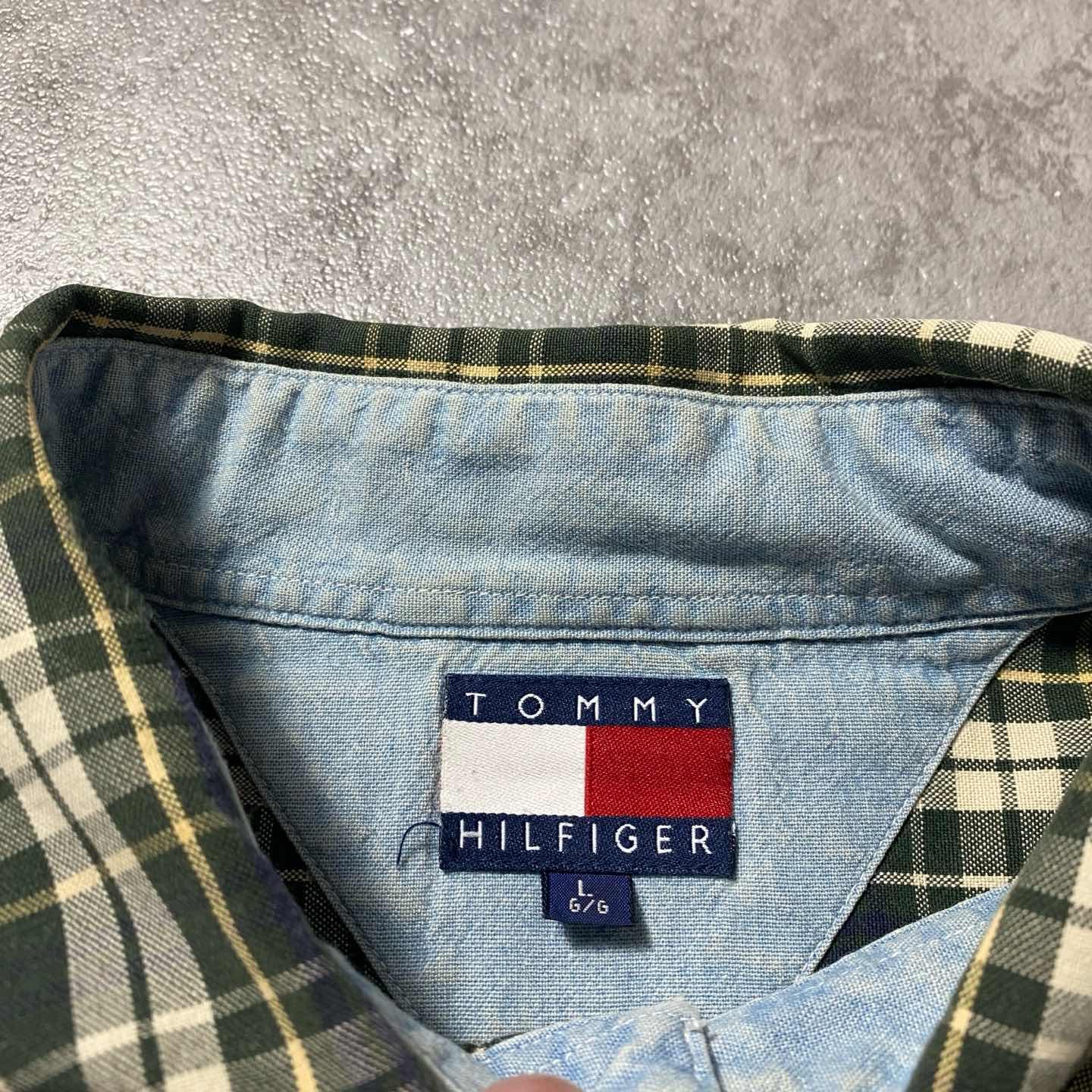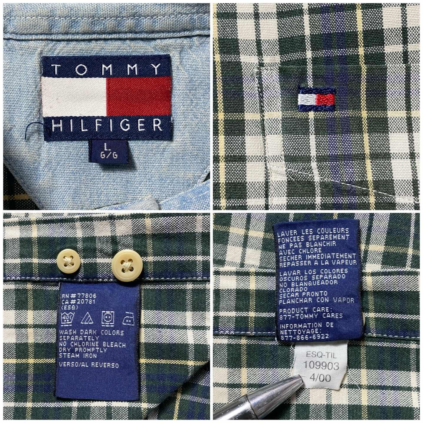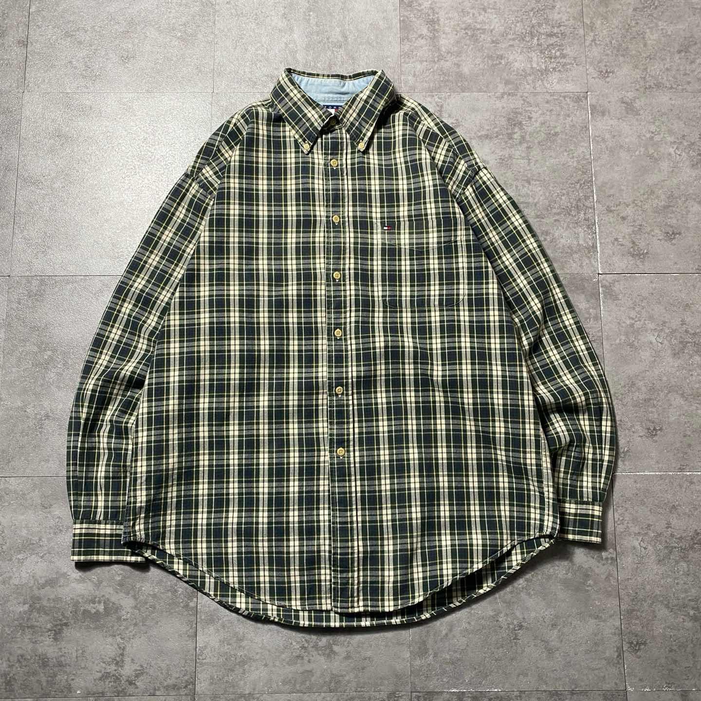 00s トミーヒルフィガー 刺繍ロゴ 胸ポケット ボタンダウン チェックシャツ