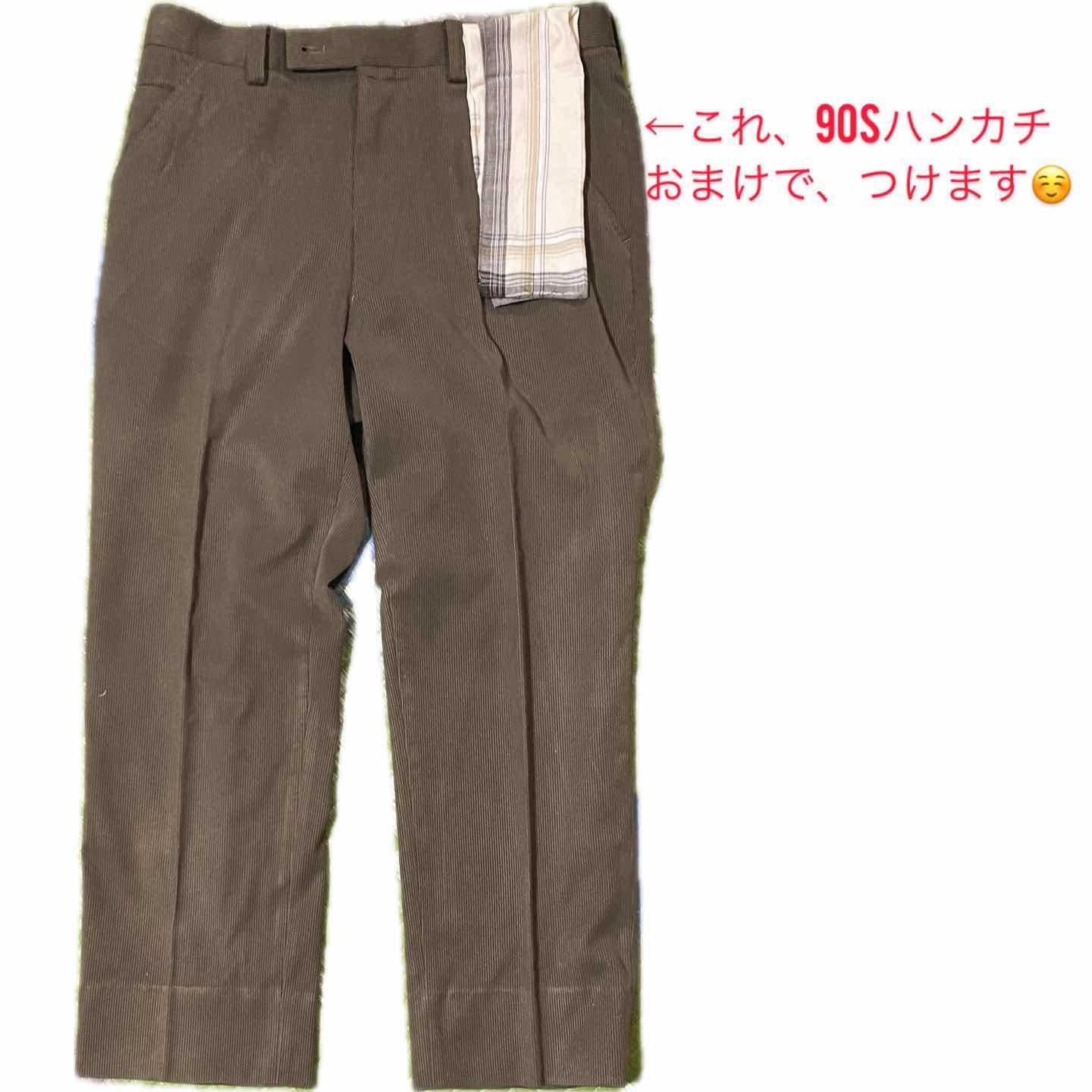 80-90s KENZO GOLF Sプレス トラッド ボトム おまけ付^_^W85 現在展開されてないので、 入手不可の、希少なライン KENZO GOLF の、本来は、↓ラインなのに、デニム風の機能まである、トラッド感が、垣間見た時代の大人気ライン、スラックス、アメカジ、トラッドミックスせれたような、デザインは、着回し抜群!! ↓概要 KENZO GOLF(ケンゾーゴルフ)」は、高田賢三氏が創業したパリのファッションブランド「KENZO」が、80年代から90年代にかけて展開していたゴルフウェアラインを、カジュアルにら楽しめるよう作成したらいん、 よって、80-90s.vintageで、状態よい、この時代は、ブランドが、スポーツミックス参戦した希少な 時代しかも、センタープレスが、美しいシルエットを見せつけます、あとは、写真参照!! コーデ、これ系の、ベルトループラインが、スラックス系は、コツがあります、無地T.とかは、スタンダードだが、正直、、、古いっす、すでに終わりみえてるコーデ、 折角トラッド感あるなら、 ドライボーンズよりに、決めたり、少しタフか、逆にプレッピーや。ヨーロピアンにするのが、現代トレンドです。私は今回レオパードに、レイヤード、キャスチングで、ネオルードトラッドにしました!! 参考に、 ちなみに、バンダナたらしみたいに、してる、ハンカチは、スピード購入いただきましたら、プレゼントします^_^おまけ付き ▷color◁ ブラウン系写真参照 ※使いのブラウザにより色が変わってみえる場合あります ▷size◁ 平置き片面採寸【㎝表記】 表記size85表記 M-Lくらい 【※ウエストのみ、メジャーで一周採寸】 ウエスト85表記 股上37ハイ決まる股上 股下67 少し短い?って方へ、いやいや、↑37もあるから、日本人に良い丈っす 腿渡り30 裾幅24美しいストレート モデル170㎝/普通体型、30インチジャストな体型参考に、 ▷material◁ ポリエステルを、ドリル仕上げでかなり上質、 ▷condition◁ 良いです、 ※入念にチェックは、しておりますが、vintage/usedの特性ご理解下さい #トラッド #ドライボーンズ #スラックス #KENZO #極上