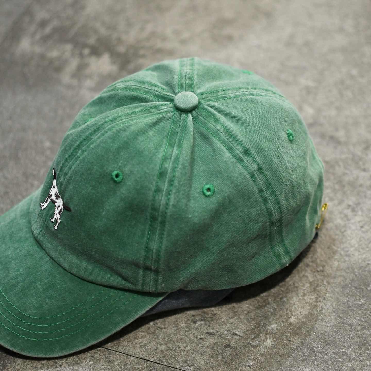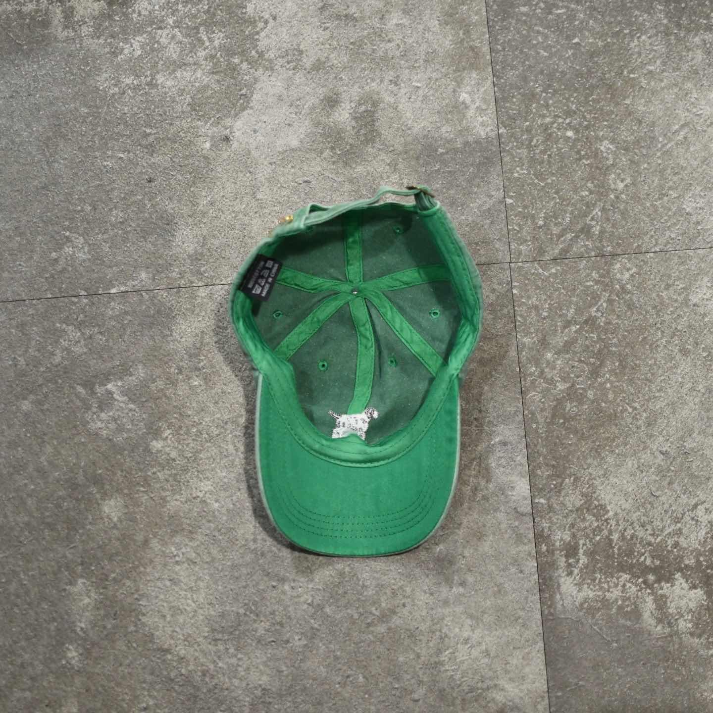 古着 フェード 6パネル 犬 刺繍 ベースボールキャップ キャップ 帽子 緑